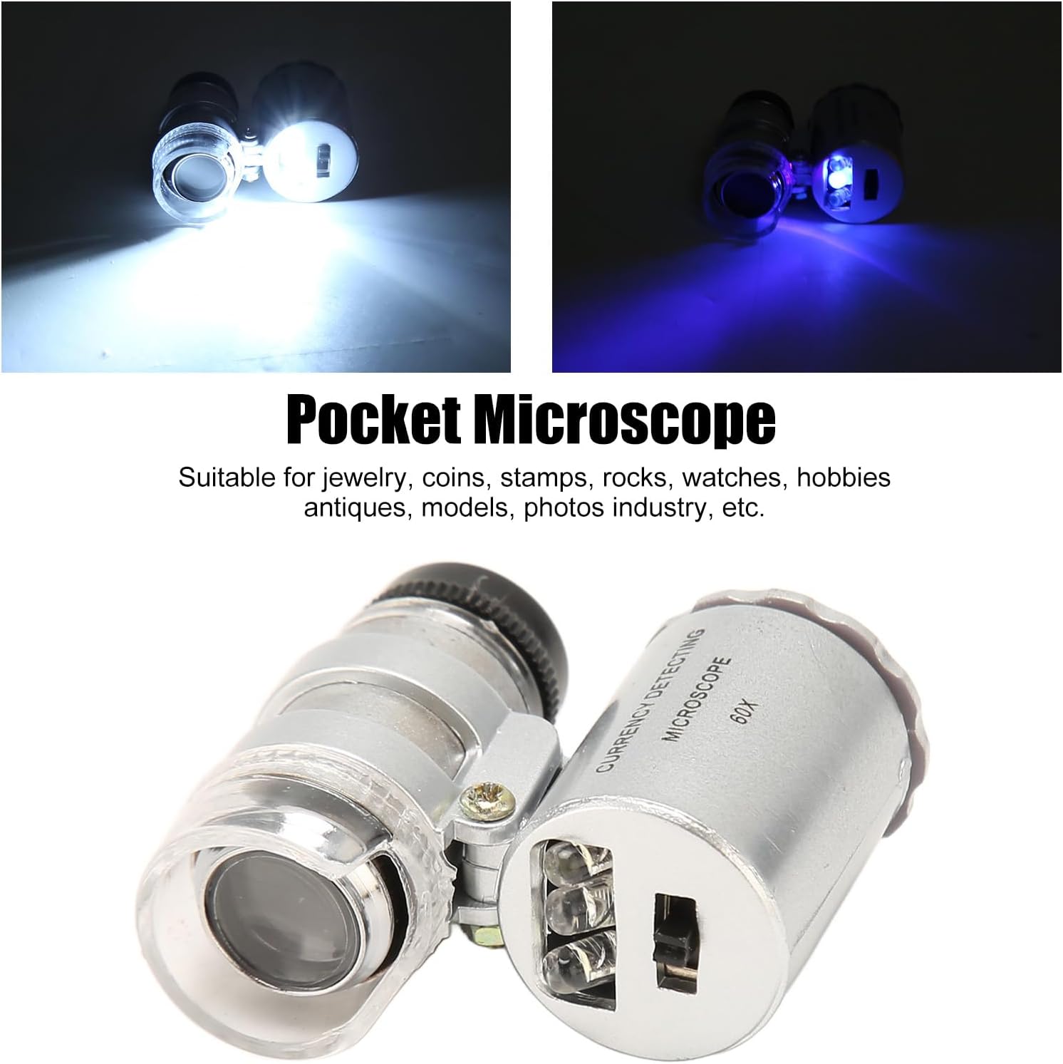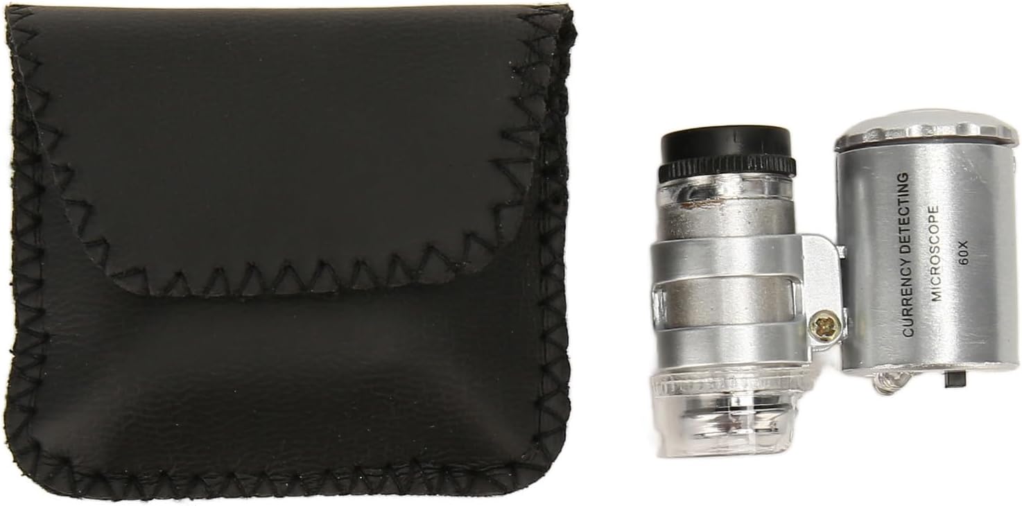 Dimensioni compatte: questa lente da orologiaio è anche leggera e compatta che può essere messa in tasca sempre e ovunque. Viene fornito con una custodia, più comoda da trasportare Ingrandimento 60X: questa lente per occhi da gioielliere adotta un ingrandimento 5X, in modo da poter osservare i dettagli più fini di gioielli, oggetti d'antiquariato, tessuti e altro ancora Luci LED standard: questo microscopio tascabile è progettato con luci LED standard e l'angolo può essere facilmente regolato in base alle diverse esigenze Regalo perfetto: questa lente d'ingrandimento per gioielli è un'idea regalo ideale, adatta per orologiai, tecnici elettronici, gioiellieri e numismatici Ampia applicazione: questa lente da gioielliere 60X è ampiamente utilizzata in gioielli, monete, francobolli, rocce, orologi, hobby, oggetti d'antiquariato, modelli, industria fotografica, ecc.
