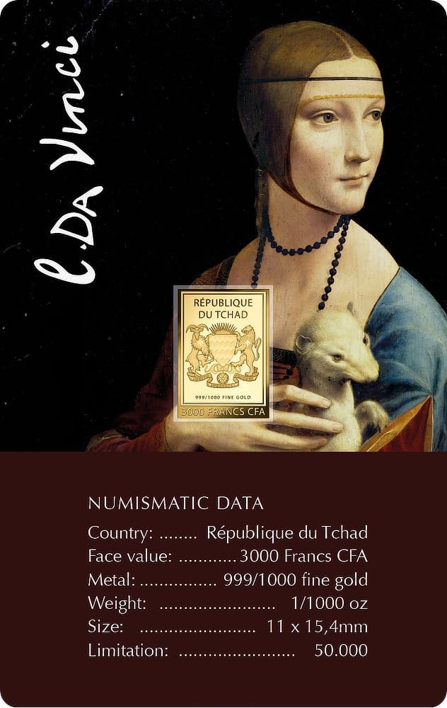 ALTA QUALITÀ - Il lingotto d'oro è realizzato con l'oro fino più puro! DESIGN – Puoi vedere la “Dama con l’ermellino” di Leonardo da Vinci! LIMITATA – Edizione di soli 50.000 pezzi in tutto il mondo! CONSERVAZIONE – La consegna avviene in una moneta card con certificato di autenticità!