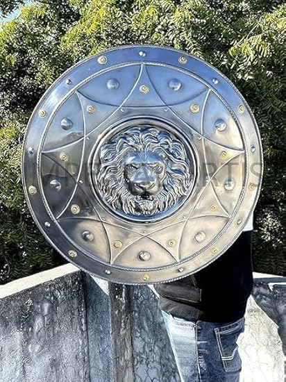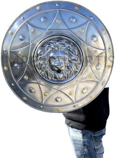 Dimensioni: 61 cm, materiale: acciaio/ferro Materiale : 18 Gauge Acciaio / Finitura: Argento Lucido Buff Lo scudo sarebbe perfetto per feste rinascimentali nella tua zona, alcune risse in cortile tra amici, eventi LARP o rievocazioni storiche. Leone faccia rotonda medievale scudo cavaliere armatura scudo solido acciaio taglia 61 cm Halloween costume / decorazione casa shied/articolo regalo Lo scudo porterà un focus impressionante a casa e ufficio. Attirerà immediatamente l'attenzione dei vostri ospiti. E ottimo regalo per gli amanti della guerra antica. Sarebbe una decorazione impressionante nello studio di qualsiasi appassionato di storia che ha una passione per le attrezzature medievali.