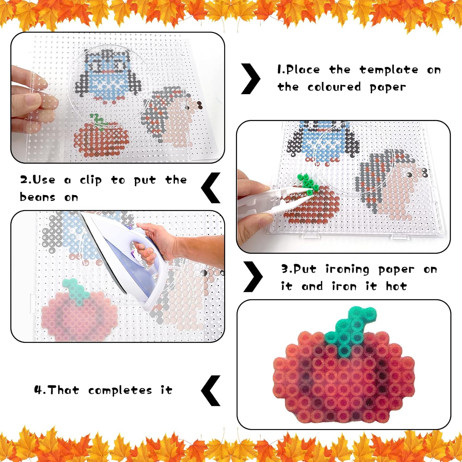🦉【La confezione contiene】1200 perline, 1 pinzetta, 3 fogli di carta da stiro, 1 piastra trasparente e 3 modelli di carta colorata. 🦉 【Materiali di alta qualità】 Le piastre da stiro sono realizzate in plastica di alta qualità, di buona fattura, resistenti e pratiche. Che si illuminano al buio, possono anche aumentare il divertimento del fai-da-te. 🦉【Temi del Ringraziamento】Decorazioni uniche con gufo autunnale, riccio, scoiattolo, foglie di acero, zucca, ecc. Per i bambini sarà molto interessante mostrare creatività e combinare diversi modelli di colori. 🦉【Giochi di pazienza】Può stimolare l'innovazione dei bambini e aiutarli a migliorare il lavoro manuale. Sviluppa la coordinazione di occhi e mani, conosci i colori ed esercita la creatività di tuo figlio. 🦉 【Regalo perfetto】 La squisita confezione regalo è molto adatta come regalo creativo per i bambini, regalo fantastico per Halloween, Natale, Pasqua o compleanno, ecc.
