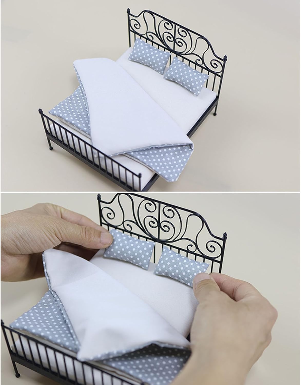 Ideale per gli appassionati di case delle bambole, collezionisti di miniature e genitori che esplorano mobili in scala dettagliati per esporre bambole con giunti sferici tra gli adulti Migliora il layout realistico delle case delle bambole, progetti fotografici in miniatura o laboratori artigianali con questo set da camera da letto che include cuscini e biancheria da letto Il design realistico e il motivo floreale preservano la magia dei cottage europei nelle case delle bambole in miniatura Letto panoramico, materasso mobile, lenzuola rimovibili, biancheria da letto simulata ed estetica autentica in ferro battuto, garantendo allo stesso tempo resistenza per il gioco interattivo. Squisito letto per case delle bambole in metallo in scala 1/12 caratterizzato da un design in ferro fuso con biancheria da letto rimovibile, perfetto per creare incantevoli camere da letto in miniatura
