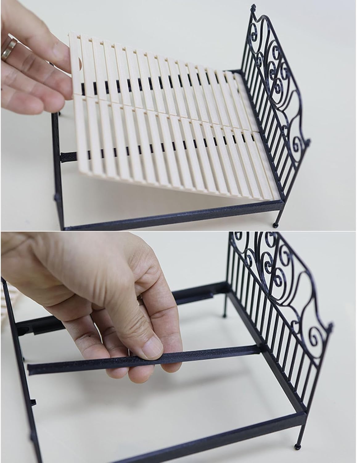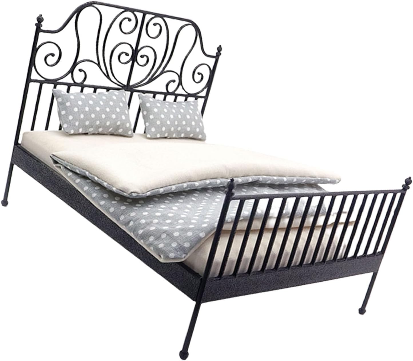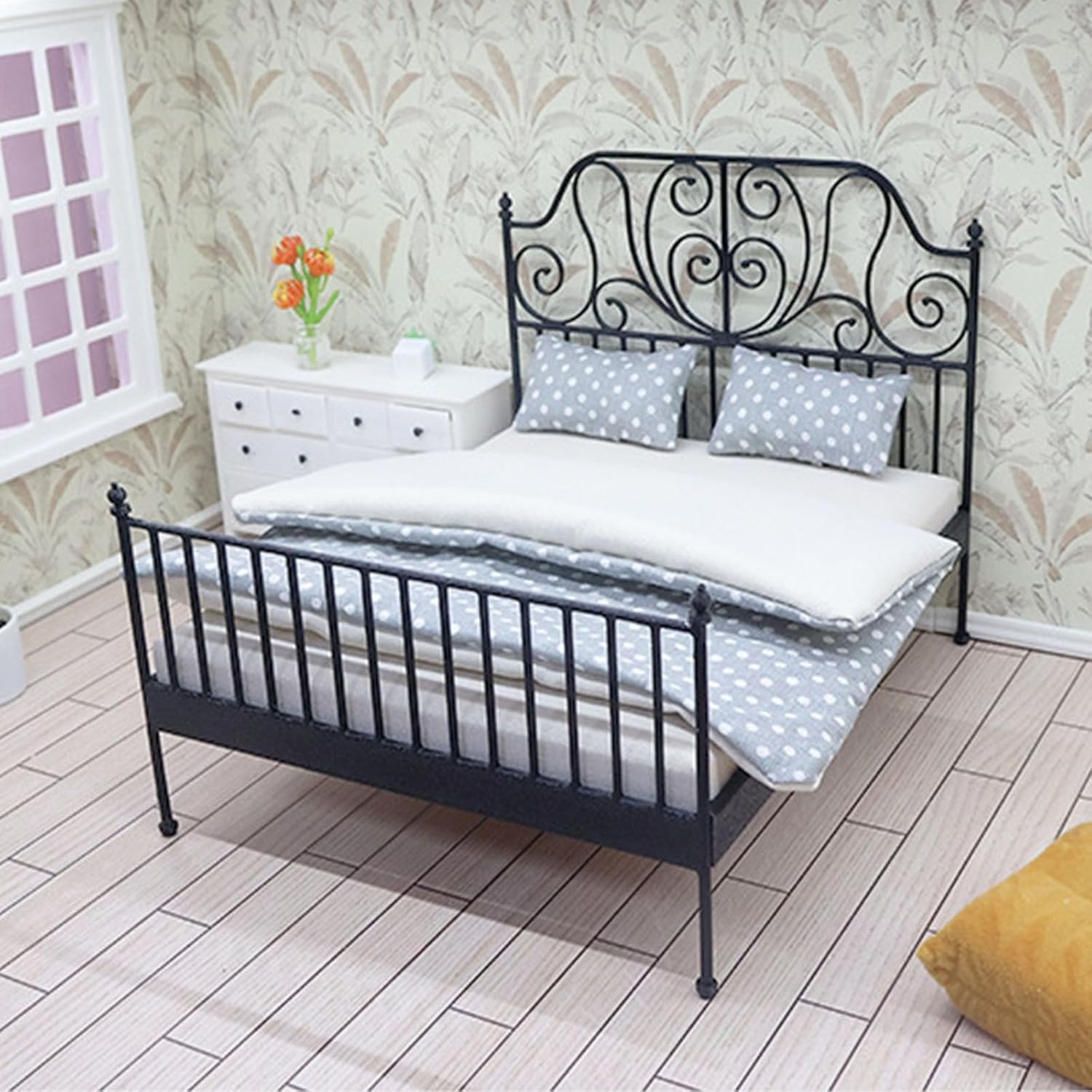 Ideale per gli appassionati di case delle bambole, collezionisti di miniature e genitori che esplorano mobili in scala dettagliati per esporre bambole con giunti sferici tra gli adulti Migliora il layout realistico delle case delle bambole, progetti fotografici in miniatura o laboratori artigianali con questo set da camera da letto che include cuscini e biancheria da letto Il design realistico e il motivo floreale preservano la magia dei cottage europei nelle case delle bambole in miniatura Letto panoramico, materasso mobile, lenzuola rimovibili, biancheria da letto simulata ed estetica autentica in ferro battuto, garantendo allo stesso tempo resistenza per il gioco interattivo. Squisito letto per case delle bambole in metallo in scala 1/12 caratterizzato da un design in ferro fuso con biancheria da letto rimovibile, perfetto per creare incantevoli camere da letto in miniatura