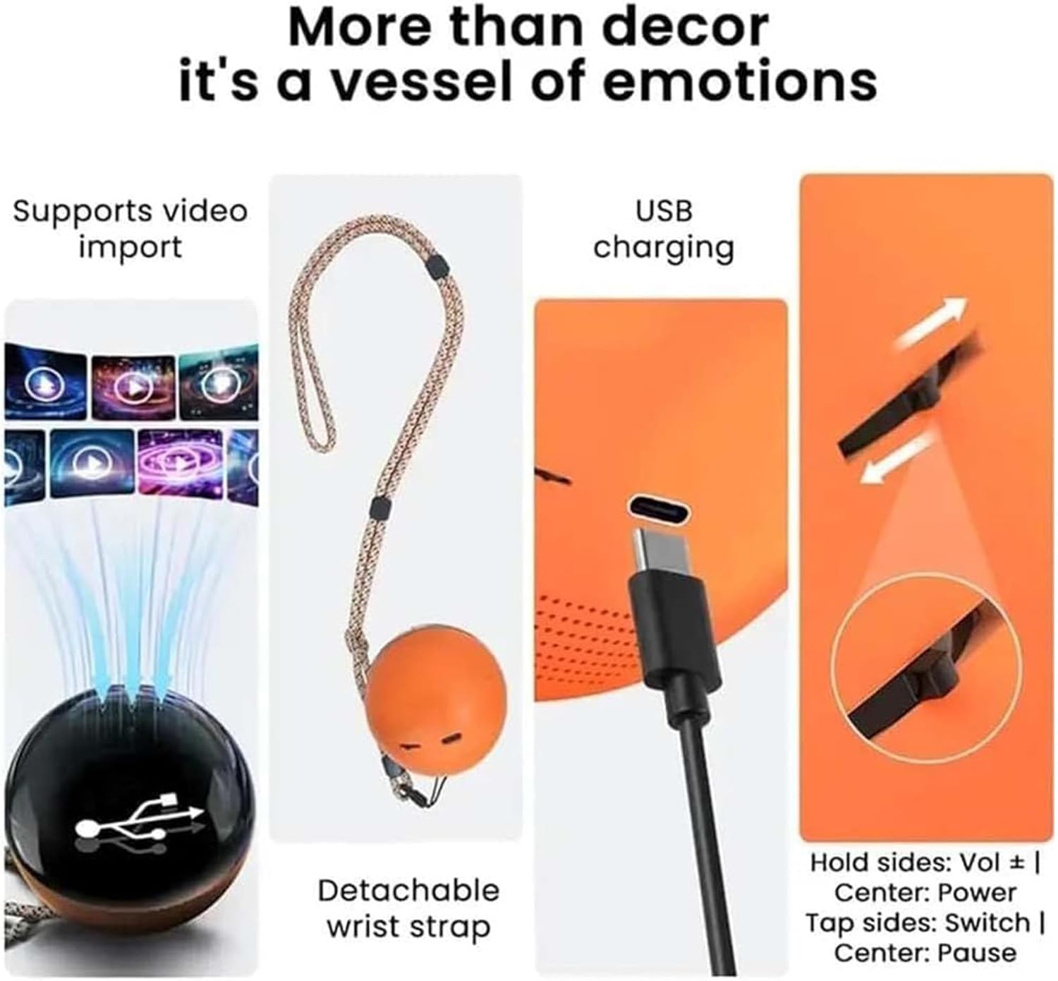 Profondità visiva accattivante: caratterizzato da un effetto di profondità sferica 3D, il lettore video Crystal Ball offre immagini straordinarie che danno vita a film e contenuti multimediali, supportati da chiarezza HD e luci soffuse per momenti condivisi confortevoli o relax personale Comodo da usare: Memory Sphere garantisce trasferimenti di file efficienti supportando interfacce di trasferimento versatili e consentendo download rapidi di contenuti multimediali, pur mantenendo la facilità d'uso con il suo sistema di importazione in tre fasi che non richiede impostazioni complesse, aiutando gli utenti a preservare dati importanti come istantanee delle vacanze o documenti dei clienti Ampiamente usato: la sfera di cristallo video cattura ricordi di viaggio e migliora celebrazioni come matrimoni, compleanni e lauree, fornendo un attraente pezzo decorativo per qualsiasi evento significativo Comodo da trasportare: la sfera video offre una struttura compatta e portatile che consente un trasporto semplice e un risparmio di spazio, perfetta per l'uso all'aperto sempre e ovunque, migliorando la tua capacità di catturare momenti senza limitazioni nei viaggi o nelle attività quotidiane Regalo meraviglioso: progettata per essere un regalo ricordo romantico, la sfera della memoria migliora le celebrazioni delle vacanze e funge da delizioso regalo per la festa di Natale; amato dai bambini durante le feste, brilla anche come ideale regalo di compleanno, rendendo ogni occasione memorabile con la sua capacità unica di conservare momenti preziosi