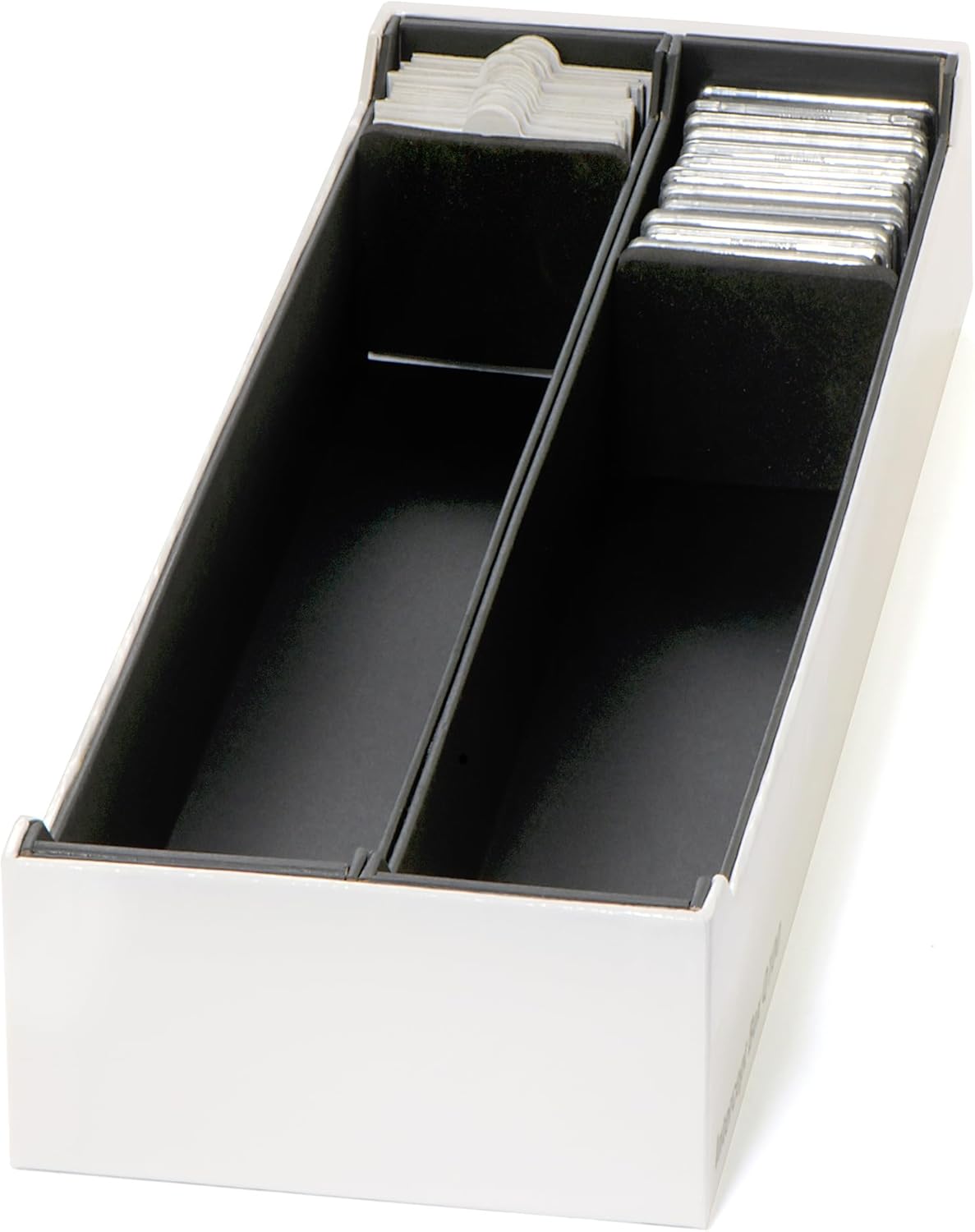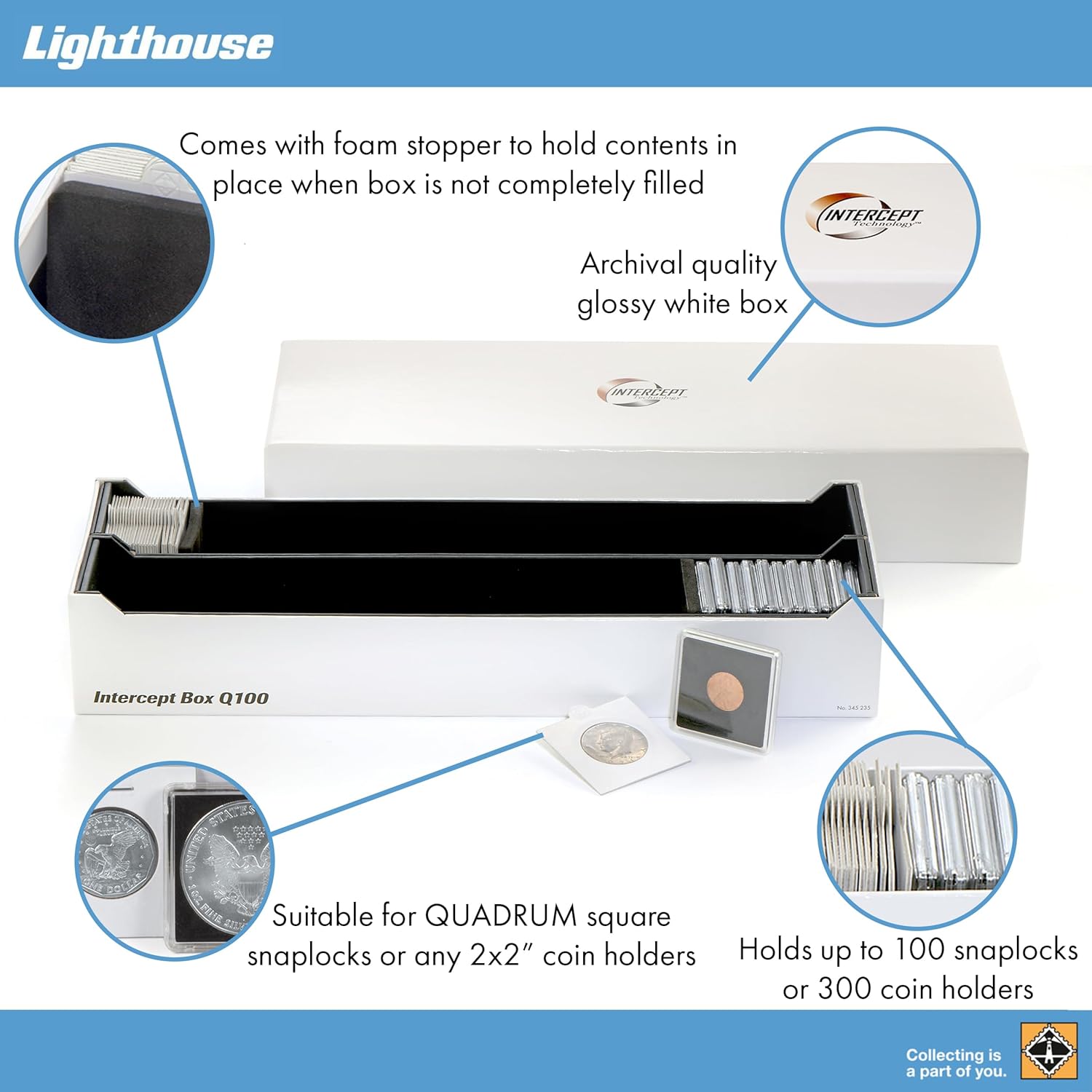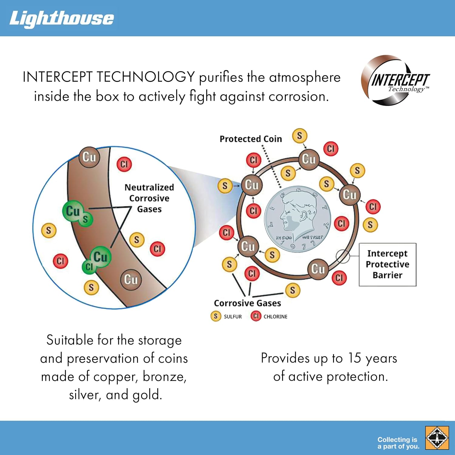 Antiossidazione: l'interno della scatola portaoggetti è rivestito con materiale Intercept, che protegge attivamente gli oggetti da collezione dall'ossidazione e dall'invecchiamento. Protezione - La custodia serve per proteggere 100 capsule per monete Quadrum o per circa 300 cornici per monete (50 x 50 mm), ma anche monete e medaglie in rame, oro, argento, ottone, ecc. Tecnologia Intercept - le particelle di rame contenute nel materiale legano permanentemente i gas corrosivi e creano così un'atmosfera neutralizzata Formato - Grazie alle sue dimensioni di 370 x 125 x 64 mm, la scatola è ideale per conservare diversi oggetti da collezione, ma anche per riporli rapidamente e facilmente. Faro - Dal 1917 produciamo accessori da collezione per monete, francobolli e altri oggetti da collezione sia per principianti che per collezionisti esperti.