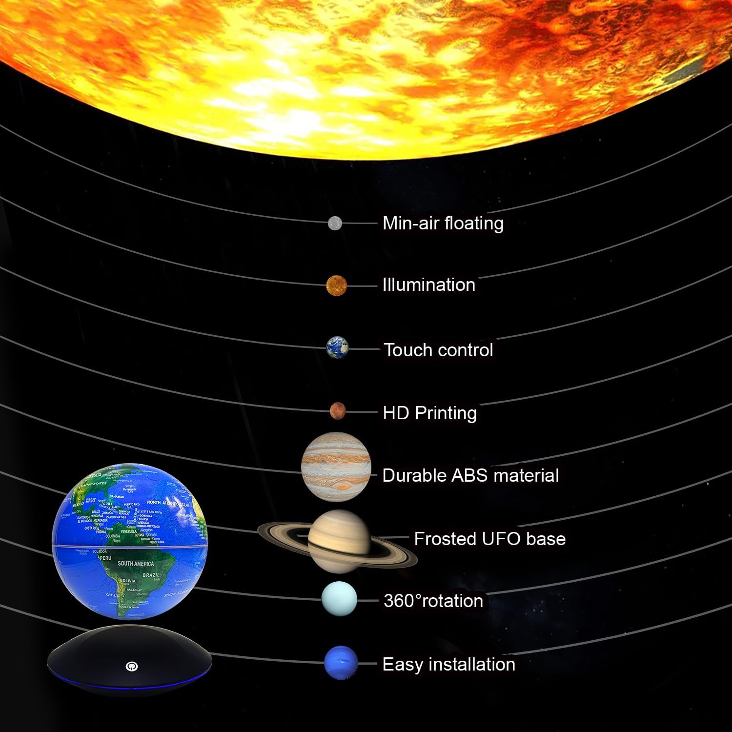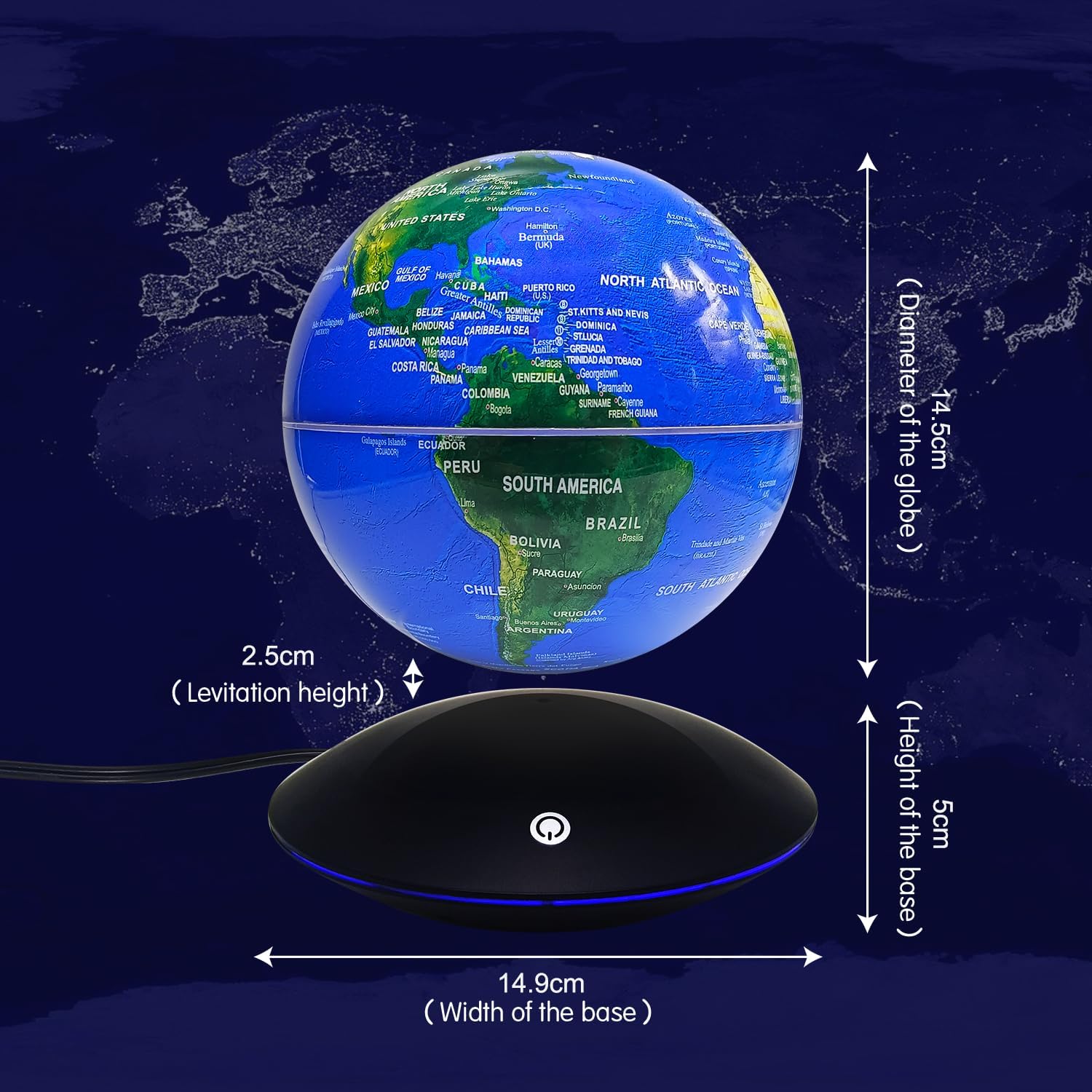 Floating-levitazione magnetica, sentire l'emozione del globo sospeso. Il telaio è con luce colorata LED per renderlo grazioso nel buio.Il colore della sfera cambia con la rotazione della Terra. Strumenti per l'insegnamento-grande strumento per insegnare ai vostri figli la conoscenza della geografia. Ispirando il loro interesse Geografia. Ampia applicazione-Creative Gadget High-Tech che guadagna favore nelle persone di tutte le età, può essere utilizzato a casa, in classe, o come decorazione scrivania. È un grande dono per i bambini e gli amici. Come funziona – è azionato da un sistema magnetico controllato elettronicamente.Plug in, mettere il globo sopra sulla base per sentire la forza ripugnante, una volta ottenere. Il punto di bilanciamento, allentare la mano, il globo si galleggiare. SORPRESA PERFETTA – Tutti rimarranno stupiti da questo meraviglioso mappamondo. È un regalo a sorpresa perfetto per compleanni, feste, festa del papà, San Valentino, Ringraziamento, Natale, ecc