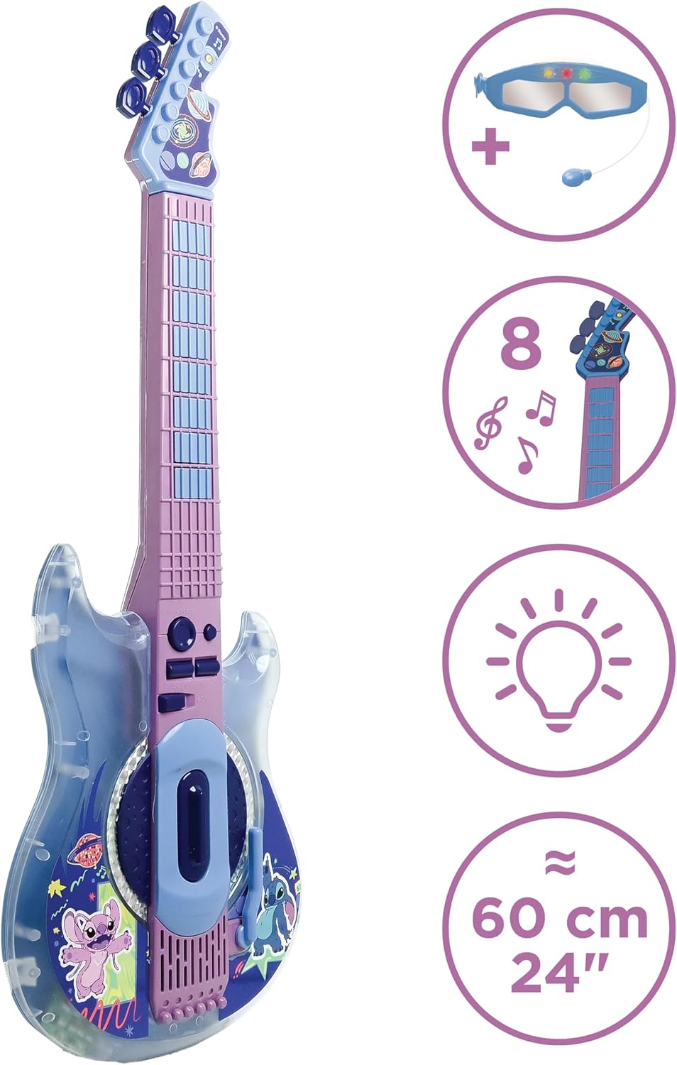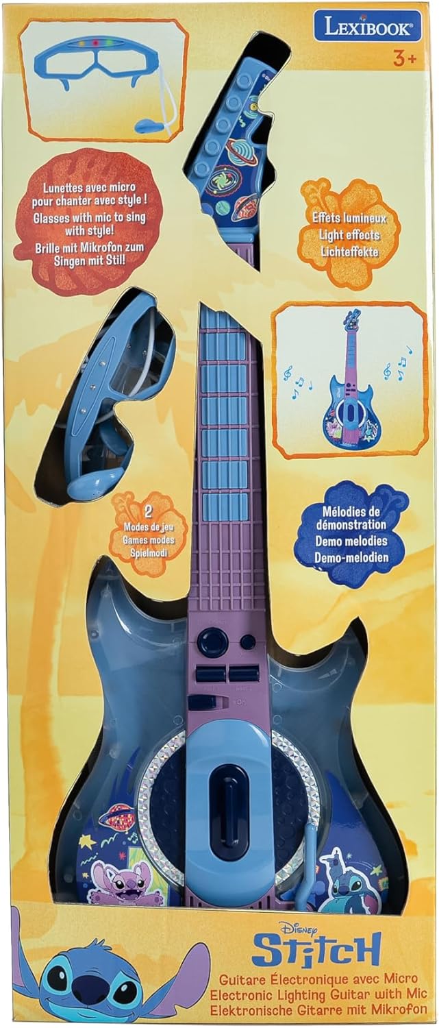 SUONA LA CHITARRA CON STILE - Scopri la musica con stile grazie a questa chitarra elettronica Stitch, accompagnata da occhiali e microfono inclusi per performance indimenticabili! 2 MODALITÀ DI GIOCO - Suona sulle musiche di dimostrazione o crea le tue melodie con 8 canzoni e 2 ritmi inclusi. EFFETTI LUMINOSI - Approfitta di fantastici effetti luminosi per performance musicali coinvolgenti e indimenticabili. FACILE DA USARE - Con il suo manico di chitarra dotato di 8 tasti, questa chitarra elettronica è ideale per i giovani musicisti emergenti. QUALITÀ LEXIBOOK - Apprezzata dai bambini, approvata dai genitori. Marchio di giocattoli rinomato e certificato, Lexibook offre prodotti intelligenti, di qualità e sicuri, per un acquisto in tutta sicurezza.
