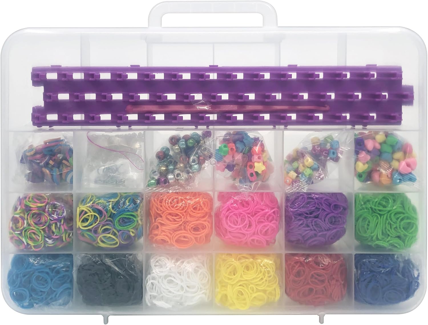 CE L'HA TUTTO – Con 5.600 elastici senza lattice e oltre 360 perline colorate, questo set gigante tutto-in-uno offre un'esperienza completa e creativa. STRUMENTI PER CREARE SENZA LIMITI – Telaio, uncino per tessitura, anelli di giunzione, ganci a "S" e strumento per infilare inclusi per realizzare braccialetti vari e accessori personalizzati. KIT DI RICARICA O PRIMO LABORATORIO – Perfetto come prima scatola creativa o come ricarica per gli appassionati, permette di immaginare e realizzare decine di creazioni. ATTIVITÀ MANUALE DIVERTENTE – Ideale per sviluppare la motricità, la concentrazione e la creatività dei bambini durante compleanni, momenti di svago o laboratori fai-da-te. QUALITÀ LEXIBOOK - Apprezzato dai bambini, approvato dai genitori. Marchio di giocattoli rinomato e certificato, Lexibook offre prodotti intelligenti, di alta qualità e sicuri, per cui potete acquistare con fiducia.