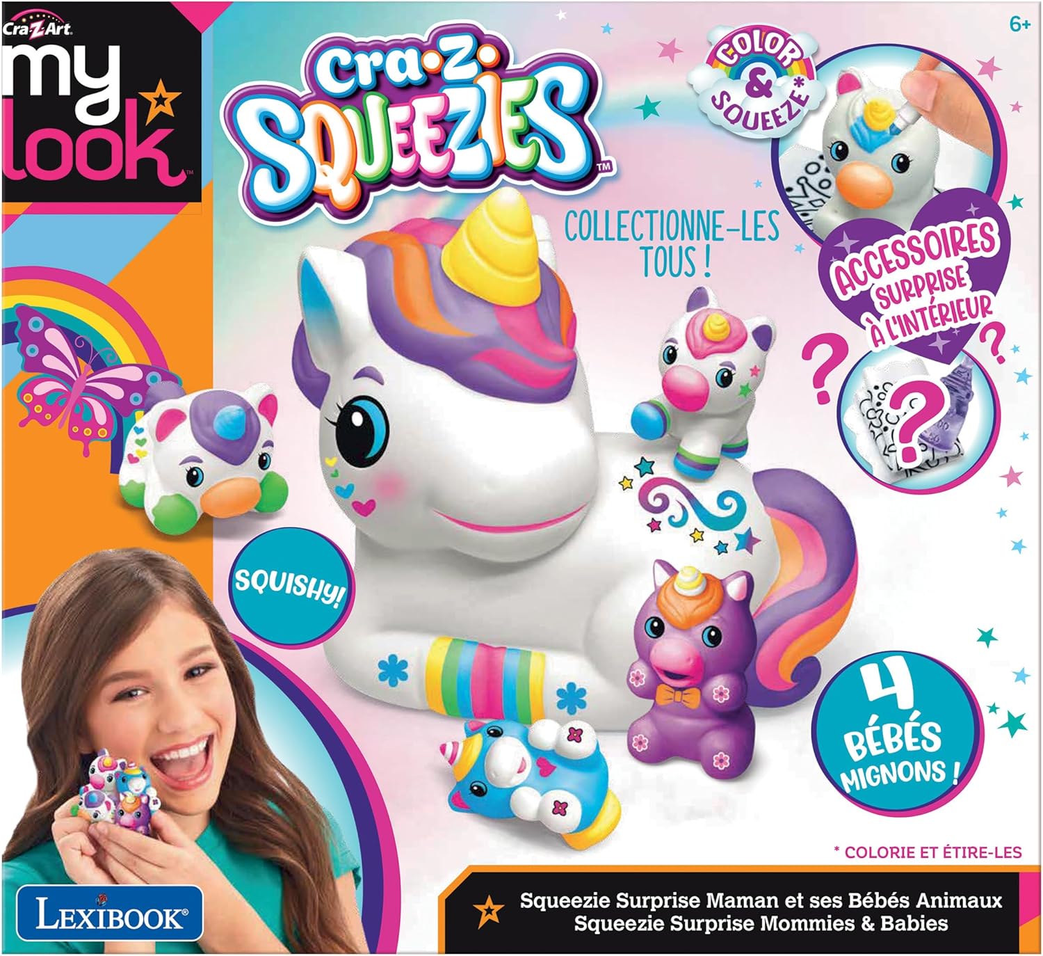 ADORABILI CUCCIOLI DI ANIMALI – Scopri un unicorno, un orso, un cane o un gatto con i loro cuccioli da coccolare e colorare. FIGURINE PROFUMATE – 5 Cra-Z-Squeezes morbidi e profumati da collezionare e personalizzare. ACCESSORI INCLUSI – Mini pennarelli, biberon, coperta, adesivi e certificato di nascita per giocare e decorare. SORPRESA DA SCOPRIRE – Ogni animale nasconde un accessorio misterioso per ancora più divertimento e sorprese! QUALITÀ LEXIBOOK - Apprezzato dai bambini, approvato dai genitori. Marchio di giocattoli rinomato e certificato, Lexibook offre prodotti intelligenti, di alta qualità e sicuri, per cui potete acquistare con fiducia.