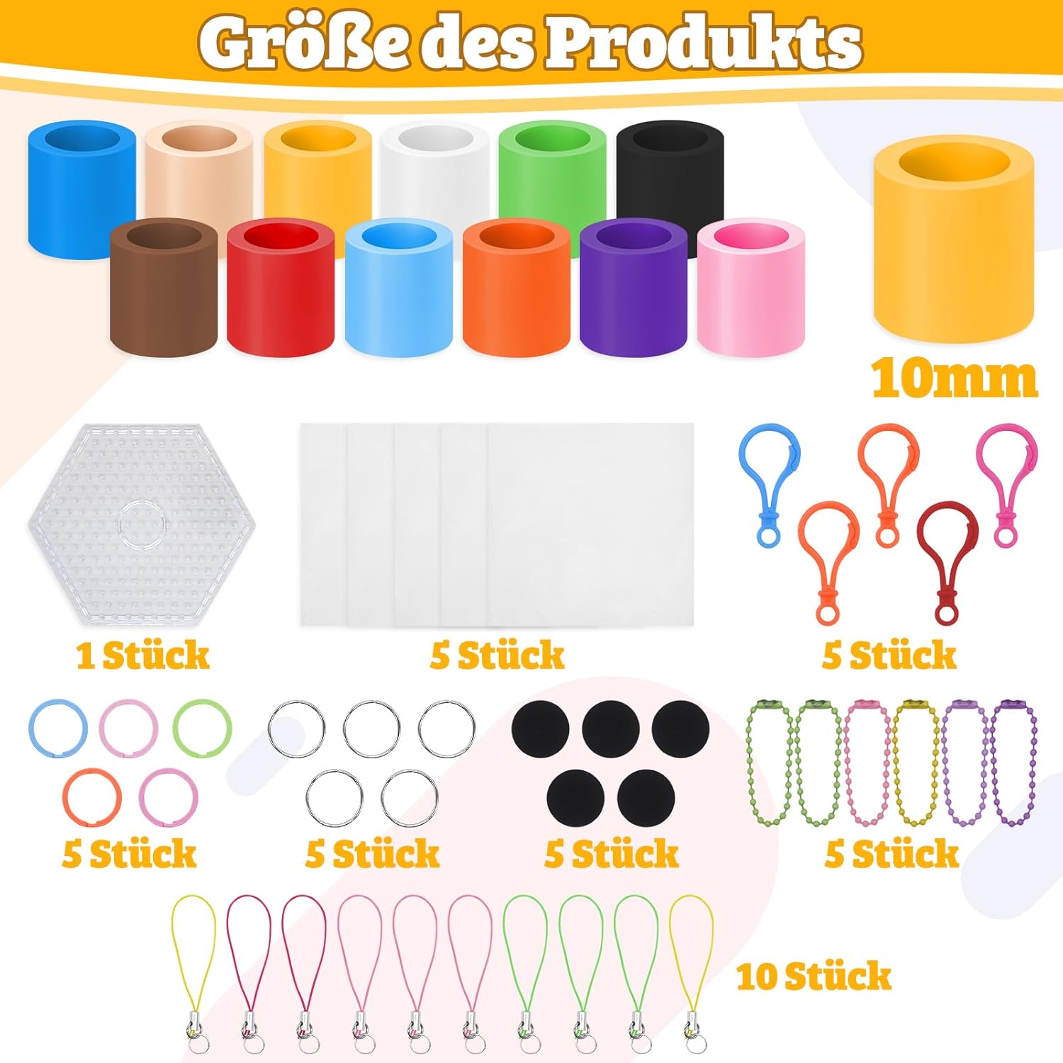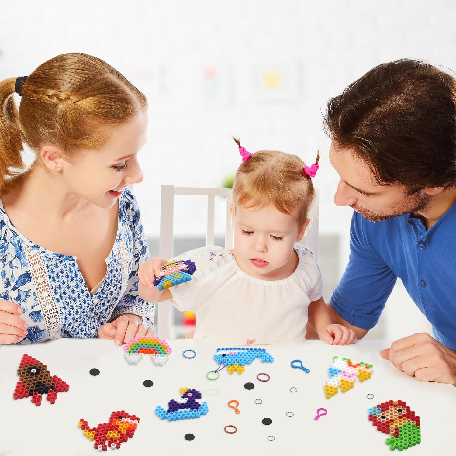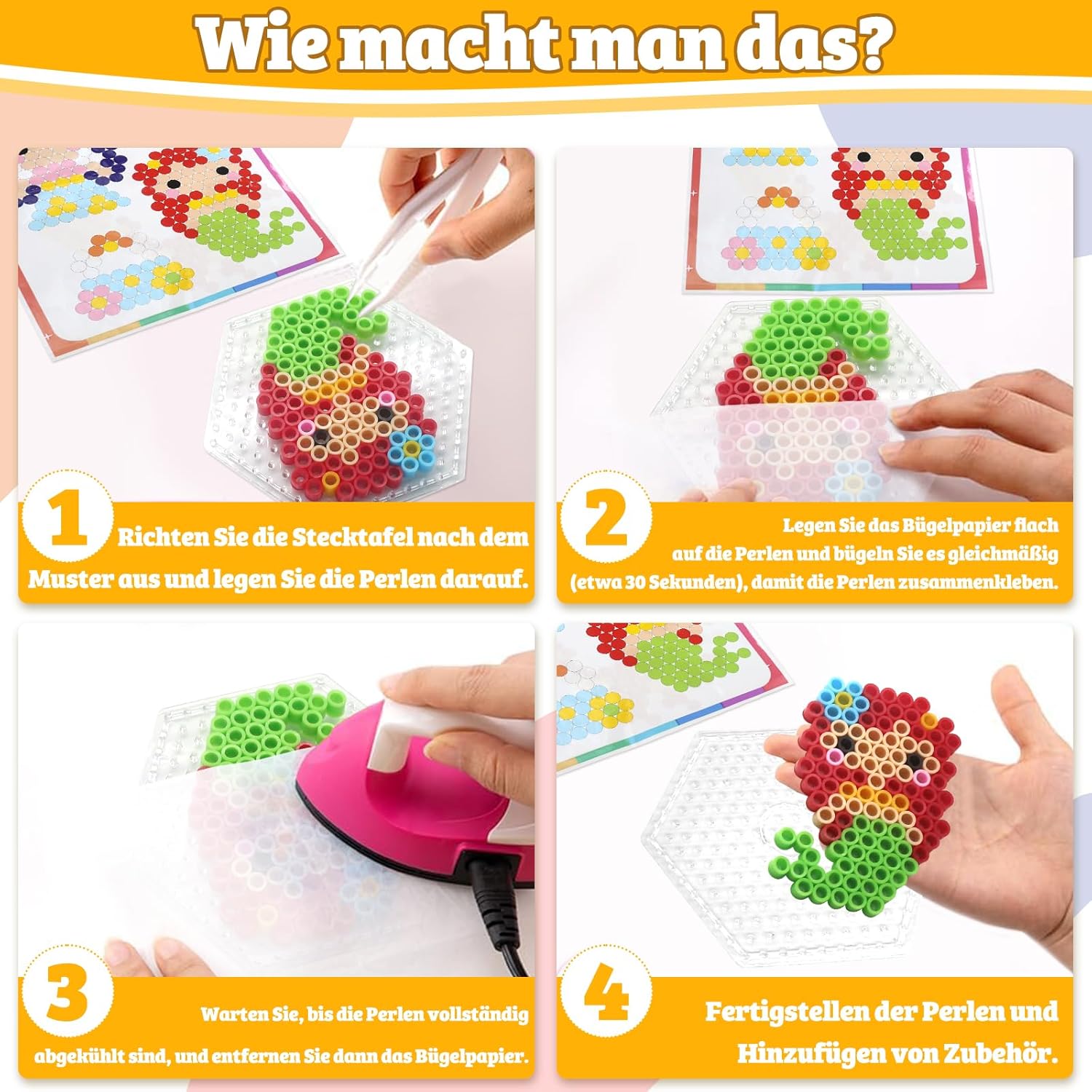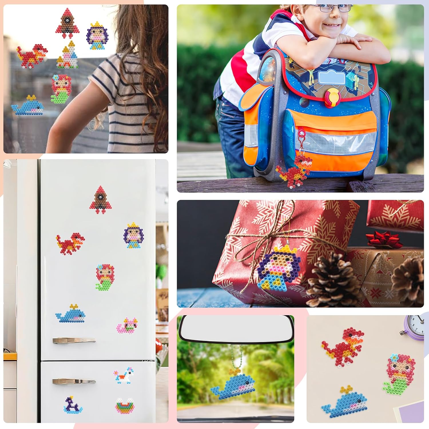 【Set di perline da stiro da 1400+ pezzi】Riceverai: oltre 1400 pezzi di maxi perline da stiro da 10 mm in 12 colori, 16 modelli diversi, 1 tavola per unghie esagonale trasparente, 5 fogli di carta da stiro, 10 grandi anelli chiusi, 10 corde per chiavi, 5 anelli per chiavi in ferro, 5 anelli per chiavi in plastica, 5 magneti. L'artigianato creativo può essere divertente per i bambini. 【Materiali di alta qualità】Il set di perle da stiro è realizzato in plastica di alta qualità senza rivestimento chimico. Sono progettati per sciogliersi, il che significa che non emanano un forte odore di plastica fusa e il colore del tuo capolavoro dura più a lungo. Il numero di perle calde dipende dai requisiti del modello, quindi il numero di ciascun colore varia. 【Vari modelli creativi】Le grandi perline termoadesive contengono 16 modelli, tra cui principessa, sirena, castello, corona, unicorno, farfalla, gelato, borsa, dinosauro, razzo, delfino e altri modelli interessanti, adatti a ragazzi e ragazze per giocare insieme. Abbiamo una vasta gamma di accessori. Puoi appendere le perle da stiro allo zaino o al bicchiere d'acqua come decorazione. L'esclusivo magnete può essere utilizzato anche per decorare frigoriferi, ecc. 【Facile da usare】il set di perline da 10 mm è molto facile da usare. Posiziona le perline sulla sagoma da stiro secondo il modello o le tue idee. Coprire il modello con carta da stiro e stirare delicatamente finché le perline non si sciolgono. Stira l'altro lato e lascialo raffreddare per rifinire il pezzo. Puoi realizzare opere d'arte piatte o 3D, segnalibri, portachiavi, opere d'arte con display 3D e così via. 【Regalo perfetto per i bambini】Questo è un divertente regalo fatto a mano, perfetto per i compleanni dei bambini, Pasqua, Natale, che sia una ragazza o un ragazzo, tuo figlio lo adorerà. I genitori li accompagnano mentre fanno lavoretti per promuovere il legame tra genitori e figli.