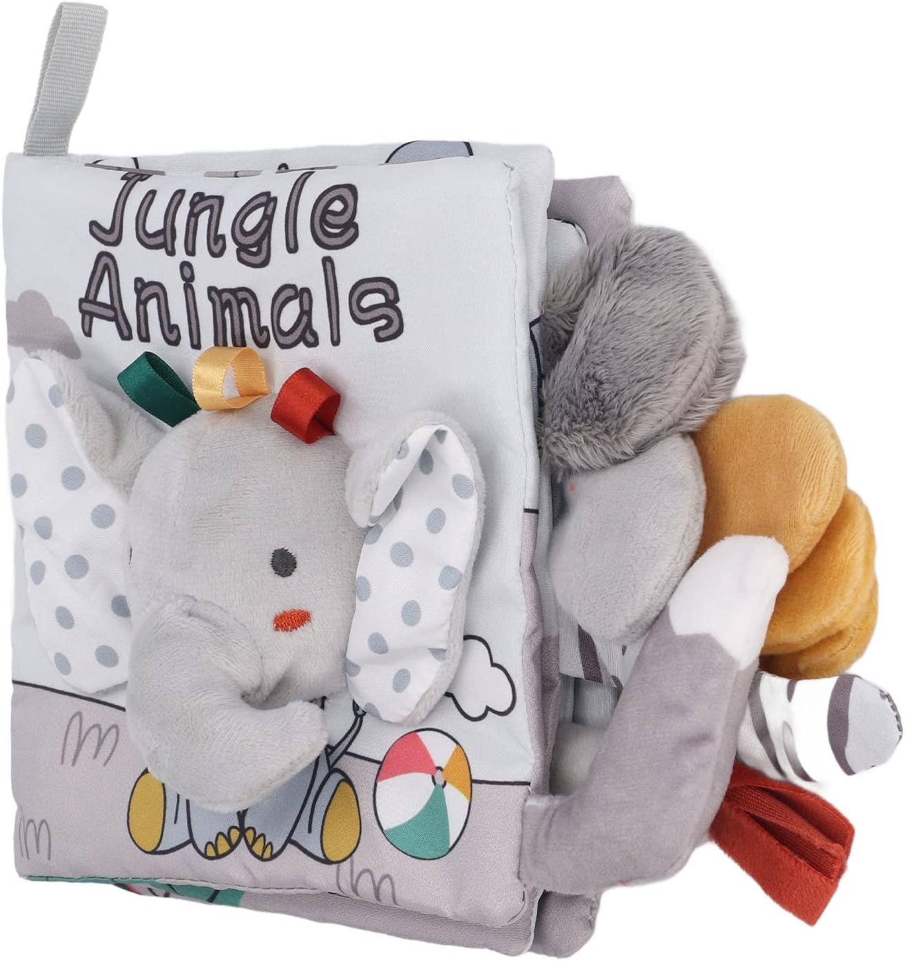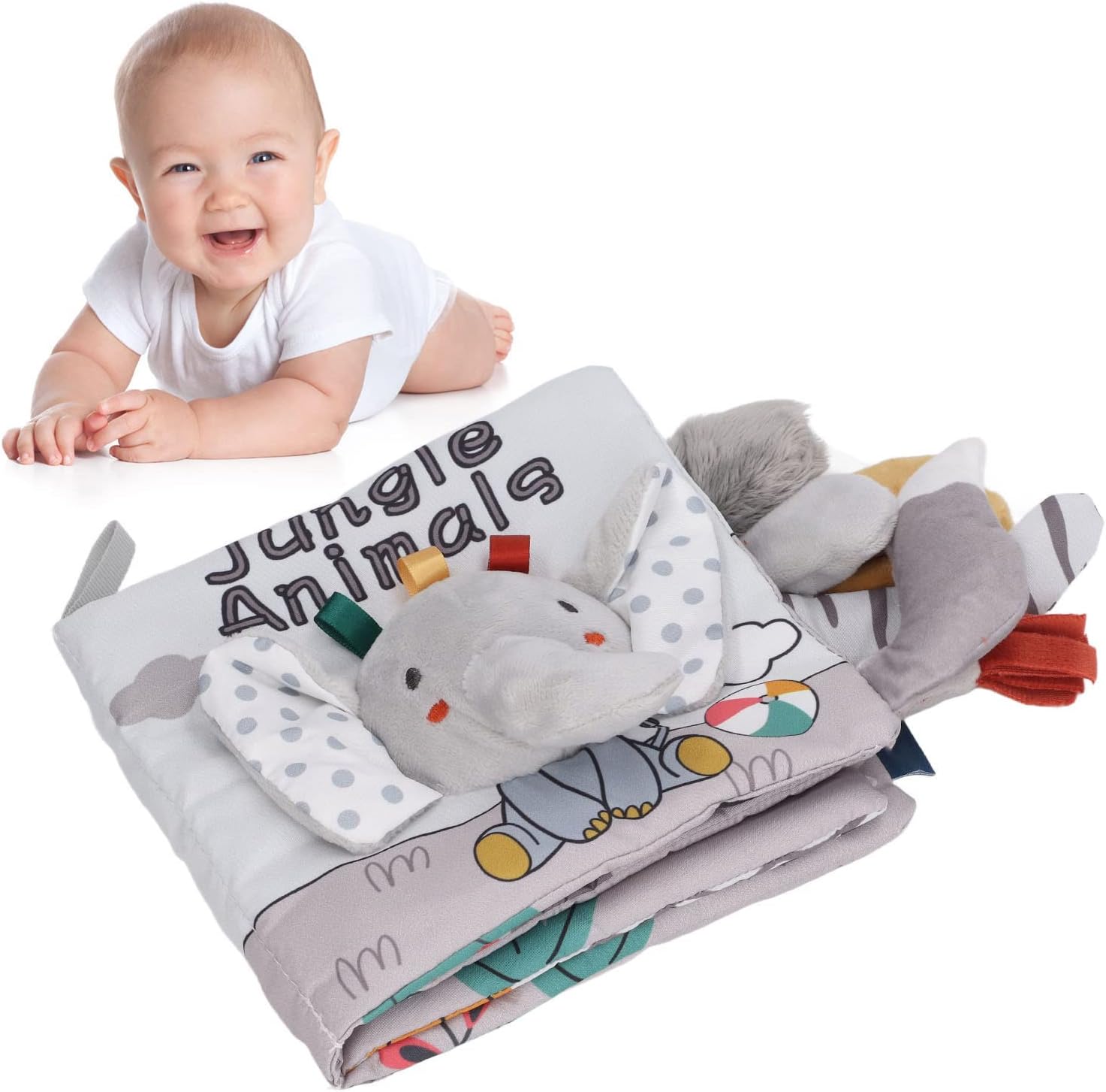 [DESIGN STIMOLANTE] I dettagli delle volant e i suoni cigolanti sulla copertina catturano l'attenzione del bambino e incoraggiano l'interazione sensoriale. [MATERIALI AMICI DELLA PELLE] Questo morbido libro è realizzato in tessuto senza bordi taglienti, sicuro per i bambini da toccare, masticare ed esplorare. [Elementi essenziali per l'apprendimento] Migliora le tue abilità linguistiche e di lettura con il vocabolario degli animali e materiali interattivi per il gioco e l'istruzione. [ESPERIENZA MULTISENSORIALE] Texture e materiali multipli stimolano i sensi dei bambini e promuovono lo sviluppo del cervello e le capacità motorie. [TEMPO DI GIOCO PORTATILE] Maniglia facile da tenere per il divertimento in movimento, si attacca al passeggino o alla custodia per bambini per un gioco conveniente.