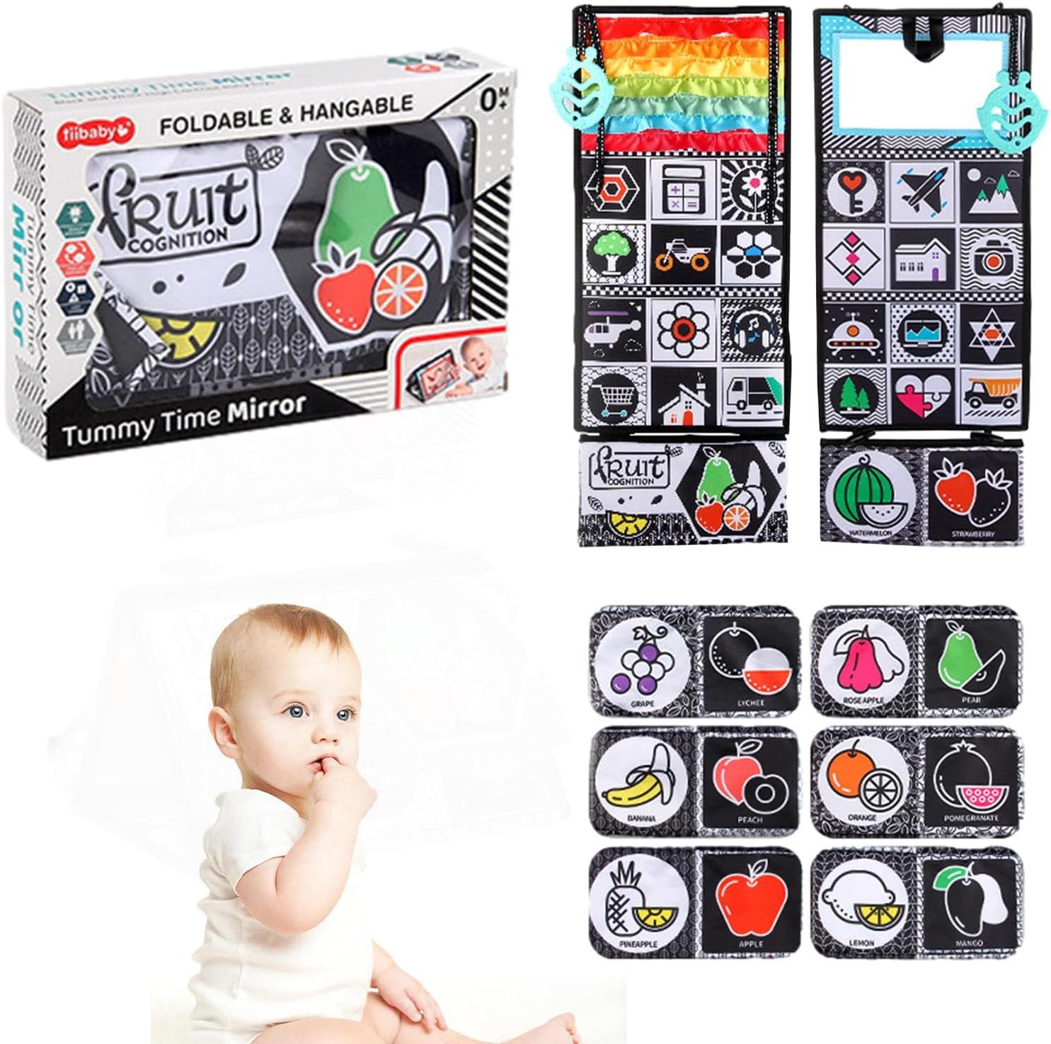 | Farbe | Black And White Double-sided Folding Board + Distorting Mirror + 4 Pages And 8 Sides Cloth Book + Gutta-percha Box |