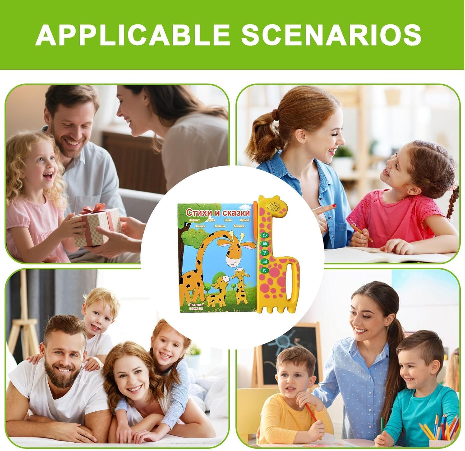 Libro Interattivo: Contenuti riccamente illustrati con risposte audio in reale e modulo sensore intelligente che crea un ambiente educativo interattivo per esplorare conoscenze in modo coinvolgente Struttura Robusta: Progettata con cura mediante materiali anti-usura e bordi di sicurezza profilati, offre longevità eccezionale e utilizzo sicuro grazie alla costruzione stabile e affidabile Regalo Ideale: Libro parlato progettato come per le feste, unisce divertimento e apprendimento in modo intuitivo per momenti familiari indimenticabili. Fiabe Classiche Rinnovate: Esplora una collezione di fiabe senza abbinate a canzoni tematiche e frasi creative, progettate per riflettere momenti quotidiani in modo originale e riconoscibile Apprendimento intuitivo: Scopri il piacere del russo grazie alla tecnologia touch e alla voce madrelingua nitida, con funzioni interattive che un'esperienza di studio dinamica e immersiva.
