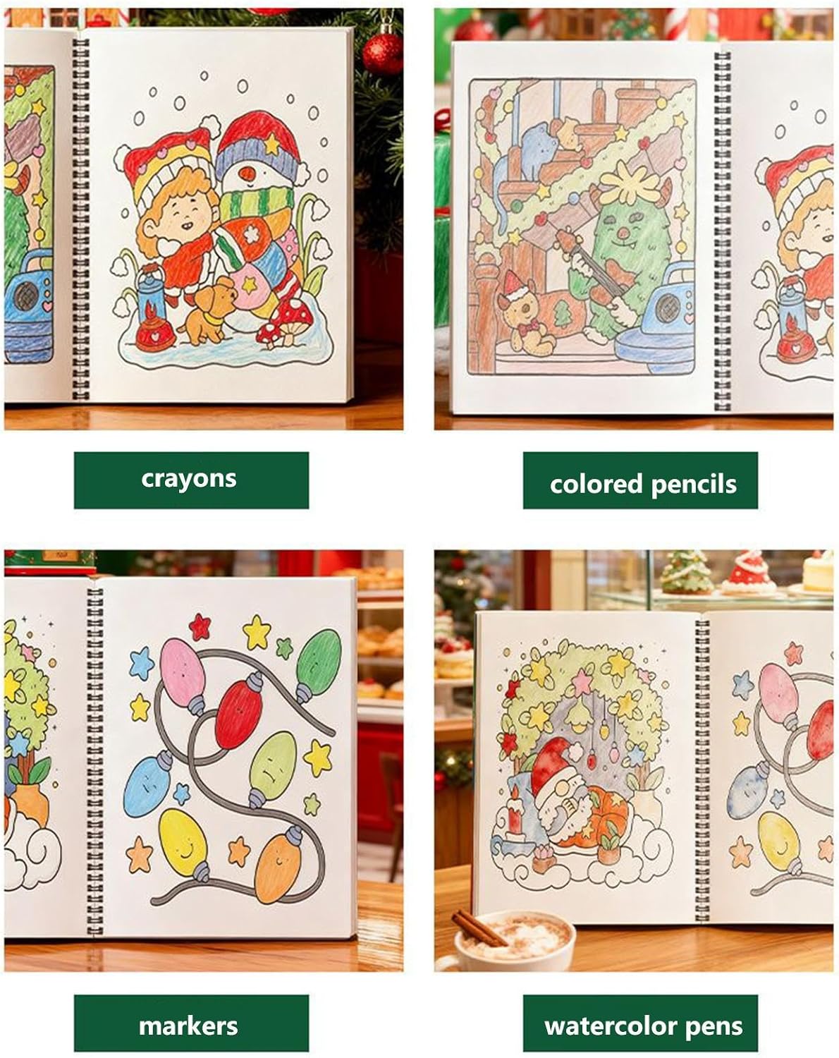 Senza strati di sbavatura: il libro da colorare natalizio offre prestazioni affidabili senza sbavature quando si utilizzano applicazioni di pastelli spessi, fornendo opere d'arte vivaci rimangono intatte su robuste pagine di cartone, rendendolo adatto per attività creative durante le vacanze di Natale o le serate invernali Design inclusivo: progettato per ospitare pastelli, matite colorate e pennarelli, questo giocattolo da colorare offre un'eccellente ritenzione dei pigmenti per immagini sorprendenti. Il suo design inclusivo incoraggia l'arte fantasiosa durante le attività di gruppo o i singoli momenti creativi Pratica di percezione del colore: con pagine da colorare guidate, questo libro da colorare per bambini aiuta a sviluppare la coordinazione occhio-mano e perfezionare le capacità di riconoscimento del colore, dando ai bambini uno sbocco creativo gratificante e accessibile per l'espressione di sé sia in ambienti domestici che scolastici Esperienza di colorazione coinvolgente: questo libro da colorare presenta grafica a cartoni animati e personaggi a tema festivo come Babbo Natale e renne, fornendo un mezzo divertente per osservare le vacanze invernali migliorando la creatività attraverso disegni che sostengono l'attenzione che intrattengono gli utenti Ricordo creativo per le vacanze: i libri da colorare di Babbo Natale ispirano l'immaginazione dei bambini, fornendo un modo delizioso per le famiglie di connettersi e condividere momenti gioiosi attraverso l'espressione artistica a tema natalizio