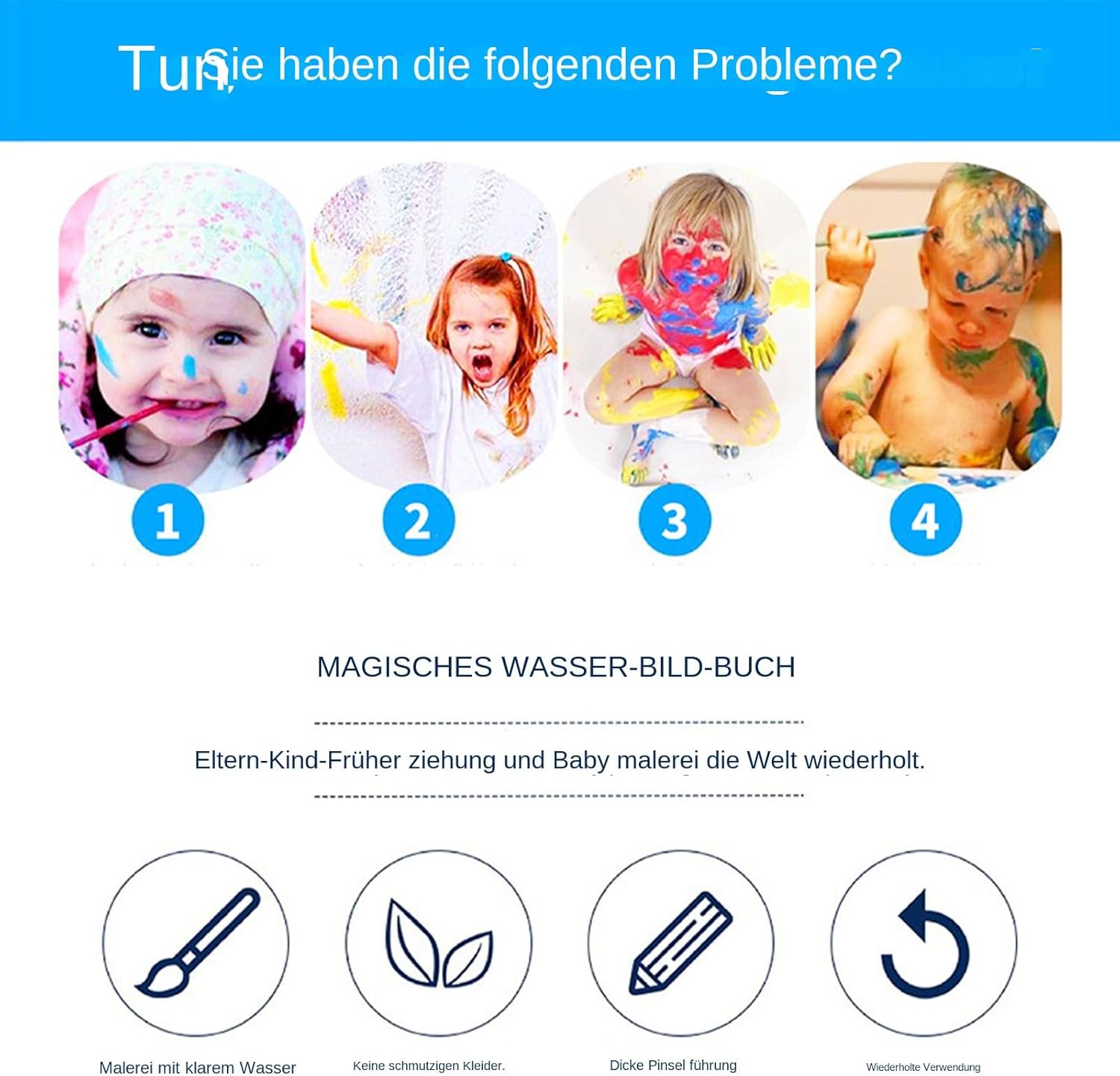 APPRENDIMENTO E DIVERTIMENTO: mostra l'immaginazione del tuo bambino con questo giocattolo educativo che non solo migliora la creatività, ma rafforza anche gradualmente la coordinazione occhio-mano. Dai sfogo alla tua immaginazione: i nostri libri per acquerelli riutilizzabili sono confezionati con una varietà di disegni e motivi elaborati e offrono infinite possibilità creative. I giovani possono facilmente creare bellissimi disegni manga con un pennello ad acqua, scatenare la loro arte interiore ed esplorare innumerevoli tecniche e stili. Comfort ecologico: crea nuovi capolavori in qualsiasi momento con un libro di acquerelli riutilizzabile. Basta attendere qualche minuto affinché le pagine si asciughino e i colori sbiadiscano e potrete liberare il vostro potenziale più e più volte. FACILE DA USARE: goditi la pittura senza problemi con il nostro libro riutilizzabile per acquerelli. Basta aggiungere acqua e una penna per iniziare la creatività. Perfetto per gli appassionati di pittura, viaggi e arte all'aperto. APPRENDIMENTO INTERATTIVO: crea il tempo di gioco con colori ad acquerello riutilizzabili in modo innovativo, mentre il bambino impara l'alfabeto attraverso il divertimento del disegno e allo stesso tempo deriva la creatività e l'amore per la conoscenza.