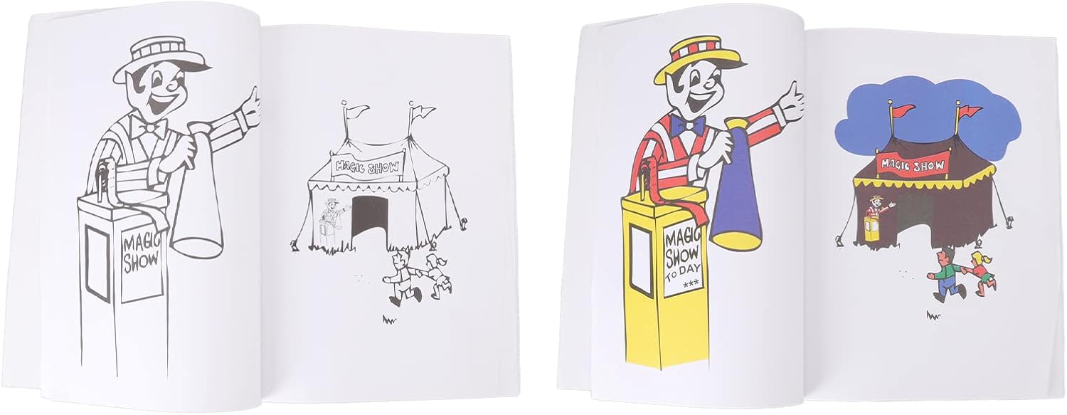 Libro da colorare: gli oggetti di scena del libro da colorare cambiano magicamente dall'immagine all'immagine a colori a completamente vuoto. Facile da usare: questo sostegno è semplice e facile da apprendere, specialmente adatto a bambini o ragazze da esibirsi, anche adatti ai bambini che si esibiranno nei programmi scolastici. Scena applicabile: adatto a maghi di tutte le età e livelli di abilità e possono stupire qualsiasi osservatore. Design dei cartoni animati: utilizzando la lavorazione sottile, il libro dell' ha un design dei cartoni animati, squisito, unico, attirando l'attenzione. Ampie applicazioni: applicabile a una gamma, molto adatta per riunioni scolastiche, discoteche, spettacoli, feste.