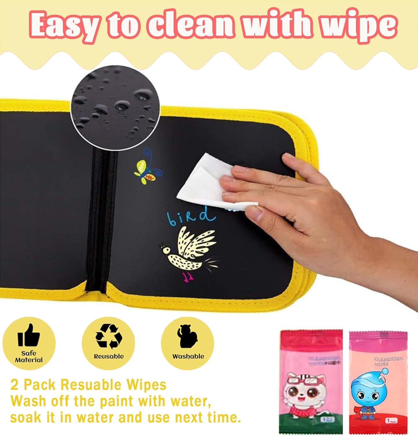 🌈 Set da pittura per bambini: questo set di libri con graffiti cancellabili per bambini ha 14 pagine, quindi c'è abbastanza spazio per disegnare, i bambini possono disegnare o dipingere liberamente mentre sono in movimento. Questo è un ottimo articolo per i viaggi in macchina. Mantieni i tuoi bambini calmi e occupati durante il viaggio e goditi al massimo il tuo viaggio! 🌈 Portatile: la dimensione del libro da colorare cancellabile per bambini 20.5 * 20.5 cm, è della dimensione giusta per stare in una borsetta e ha slot per riporre le penne, è comodo riporre i pennelli e non perderli, quindi che gli accessori da disegno del bambino siano sempre conservati in modo ordinato. 🌈 Riutilizzo: il tavolo da disegno per bambini con pagine nere impermeabili e 12 pennarelli colorati a base d'acqua senza polvere. La vernice si rimuove facilmente con un panno umido senza lasciare aloni. Riutilizzabile, rispettoso dell'ambiente e allo stesso tempo riduce gli sprechi. 🌈 Materiale Premium: il libro da colorare lavabile è realizzato in tessuto Oxford di alta qualità, morbido e confortevole, materiale PP ecologico impermeabile, resistente agli strappi e durevole. Gli angoli sono progettati con curve curve per garantire la sicurezza dei bambini. 🌈 Regalo perfetto: questo libro da colorare per bambini è il regalo perfetto per i bambini dai 3 agli 8 anni per il rientro a scuola, i compleanni e il Natale, soprattutto per i bambini e le bambine che amano imparare a dipingere e colorare. Fantastici giochi da viaggio per intrattenere i bambini fuori o a casa.