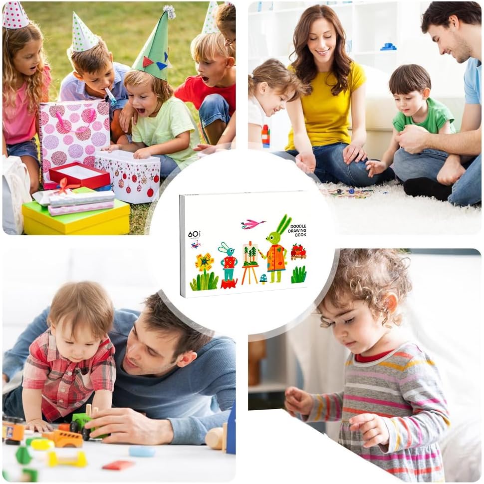 Regalo delicato per bambini: con foglie che si staccano facilmente, i bambini possono presentare le loro creazioni uniche come decorazioni o regali. Ciò fornisce un modo semplice per costruire fiducia in se stessi e rafforzare i legami con i propri cari durante le riunioni di famiglia o le nozioni di classe. Un libro da colorare versatile che promuove lo sviluppo artistico e le relazioni interpersonali nei momenti quotidiani. Ampio spazio per la creatività: progettata come carta da disegno double-face, questa carta offre ai bambini un sacco di spazio per lo sviluppo creativo e incoraggia il design fantasioso su entrambi i lati senza perdere spazio. È perfetto per dipingere spontaneamente in qualsiasi momento e luogo, anche in viaggio, e supporta un'esplorazione artistica illimitata. Esperienza di disegno flessibile: il quaderno da disegno per bambini è progettato con robusti coperchi in cartone rigido che garantiscono stabilità e mantengono la carta piatta. Ciò consente diverse posizioni di disegno e aumenta la creatività illimitata, sia all'interno che all'esterno. Il design flessibile si adatta a diverse situazioni e supporta un'esperienza di disegno versatile che i bambini possono godere ovunque. Promozione della creatività: questo quaderno da disegno per bambini garantisce una scrittura e una pittura fluide con strati di colore intensi, grazie alla carta con superfici lisce e sottili. È adatto a tutti i tipi di pennelli e favorisce l'espressione artistica durante le attività creative a casa o a scuola. La carta di alta qualità supporta una riproduzione dei colori vivida e stimola l'immaginazione dei bambini, aumentando la gioia di disegnare e dipingere. Pratico da usare: questo album da disegno non ha limitazioni sui tipi di pennello e fornisce pagine completamente vuote che possono contenere diverse esigenze artistiche. Scopri la creatività utilizzando il libro come risorsa preferita per testare concetti, tecniche di ombreggiatura o illustrazioni vivide, e consente un'applicazione flessibile.