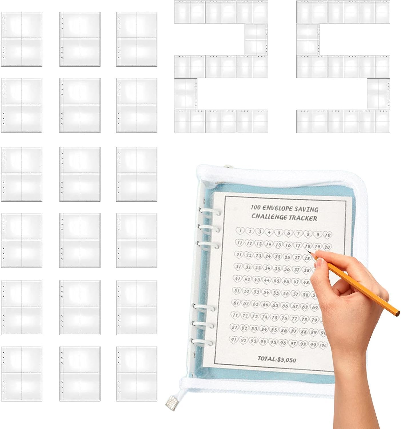 In pista: scopri un modo divertente e creativo per raggiungere il successo finanziario con il nostro raccoglitore da 100 buste. Raccogli gradualmente ricchezza inserendo diverse somme in buste e sfidandoti a raggiungere i tuoi soldi per risparmiare obiettivi con facilità ed eccitazione. Eccellente durata: realizzato con materiali eccellenti, la struttura robusta del nostro raccoglitore garantisce una lunga durata, mentre le spesse buste di carta resistono allo strappo, unisce eleganza e elasticità. Monitoraggio del risparmio semplificato: massimizza i tuoi risparmi con il nostro raccoglitore per sfide a 100 buste, scientificamente progettato per un rilevamento efficiente dei depositi. Con slot dedicati per una facile registrazione, offre anche una maggiore comodità per l'archiviazione delle note e l'inserimento senza interruzioni della penna: il tutto in un sistema ben organizzato. Scena applicabile: il nostro raccoglitore da 100 buste è una soluzione versatile che può aiutarti a organizzare e conservare tutti i tipi di piccoli oggetti, ricevute, banconote e altro ancora. Goditi una vita ordinata con questo strumento multifunzionale, perfetto per le sfide di budget e semplifica il tuo spazio. Regalo premuroso: aiuta l'amore a sviluppare sane abitudini finanziarie con il nostro raccoglitore da 100 buste, perfetto per compleanni, vacanze o qualsiasi occasione speciale. Un'opzione regalo unica e utile.