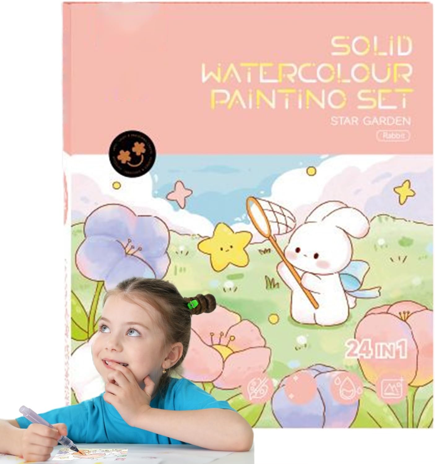 Strumento Creativo Non Tossico: Libro acquarelli con pigmenti alimentari e materiali inodori certificati sicuri per bambini, angoli arrotondati aggiungono ulteriore protezione durante attività artistiche Creatività Graduale: Include animali, piante e veicoli con difficoltà crescente, progettato per rafforzare l'interazione genitore-figlio e sviluppare efficacemente le abilità fondamentali di riconoscimento dei colori Accessorio Organizzato:Struttura leggera e compatta promuove capacità organizzative, garantendo facile stoccaggio durante i viaggi senza necessità di attrezzi extra per esprimere creatività all'aperto. Sviluppo Abilità: Unisce compiti di immaginazione spaziale a una curva di difficoltà strutturata per promuovere il controllo motorio fine e coltivare una profonda consapevolezza artistica Fusione Cromatica Naturale: La carta ad alta assorbenza favorisce transizioni di colore fluide, supportando perfettamente il pennello ad acqua e 8 pastiglie di colore inclusi. La struttura antitraccia garantisce risultati vibranti senza sbavature per un'esperienza creativa ottimizzata.
