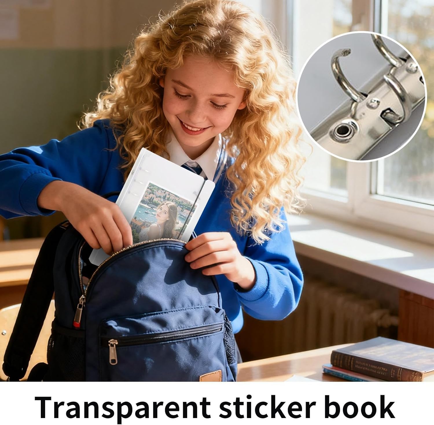 Design reiedibile durevole-copertura del legante a 6 anelli realizzato in robusto materiale trasparente, riutilizzabile e di lunga durata per organizzare note, adesivi e pagine del planner. di legante protettiva: la copertura trasparente mantiene le pagine del quaderno, le schede fotografiche e i documenti al sicuro da polvere, sporcizia e usura quotidiana mantenendo la visibilità. Organizzazione versatile - Ideale per l'uso scolastico, ufficio e domestico; per immagazzinare inserti di planner, adesivi, foto, carte o raccolte di note. Portali e leggeri: le dimensioni compatte semplificano il trasporto di zaini, borse o borse, garantendo l'organizzazione in movimento. Archiviazione personalizzabile: compatibile con carta a foglie sciolte, fogli di ricarica e vari inserti, consentendo una disposizione flessibile per uso personale o professionale.