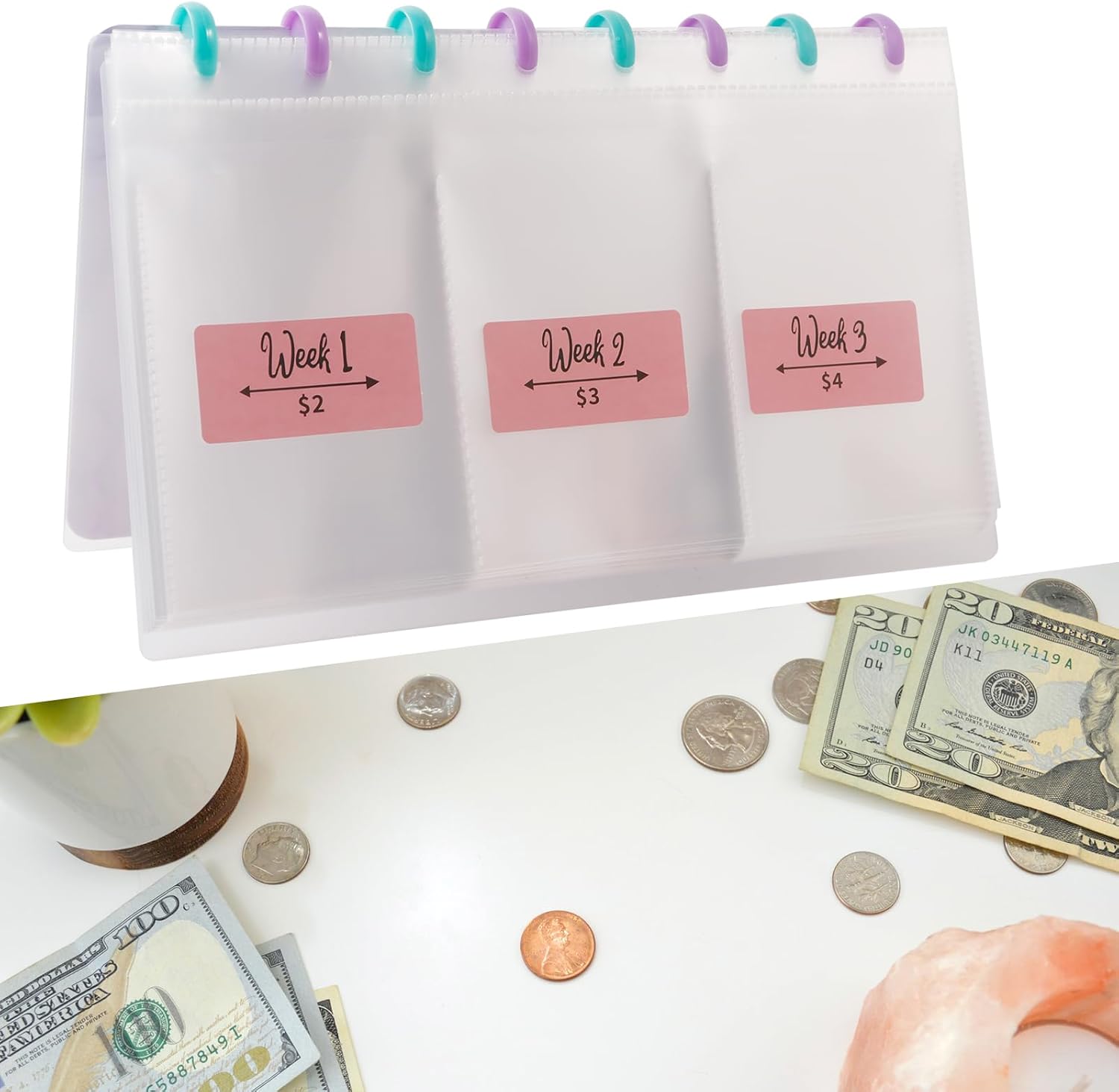 Questo libro di bilancio riutilizzabile presenta una sfida di risparmio di 52 settimane, che ti aiuta ad accumulare gradualmente risparmi e sviluppare un buon strumento di risparmio. Il nostro Savings Binder ti consente di regolare e personalizzare il tuo piano di risparmio in base alle tue esigenze Con la sua regolabile, puoi facilmente adattare il raccoglitore per adattarsi alla tua situazione finanziaria unica. Per individui e famiglie che desiderano ottenere risparmi propri o familiari . Che tu sia uno studente, un professionista o qualcuno mira a risparmiare per uno scopo specifico. Posiziona il nostro raccoglitore di risparmio in una posizione di rilievo e rendilo un rituale settimanale per registrare i tuoi progressi di risparmio. Incoraggia familiari, colleghi o compagni di classe a partecipare alla sfida del risparmio, promuovendo un risultato e continuità.
