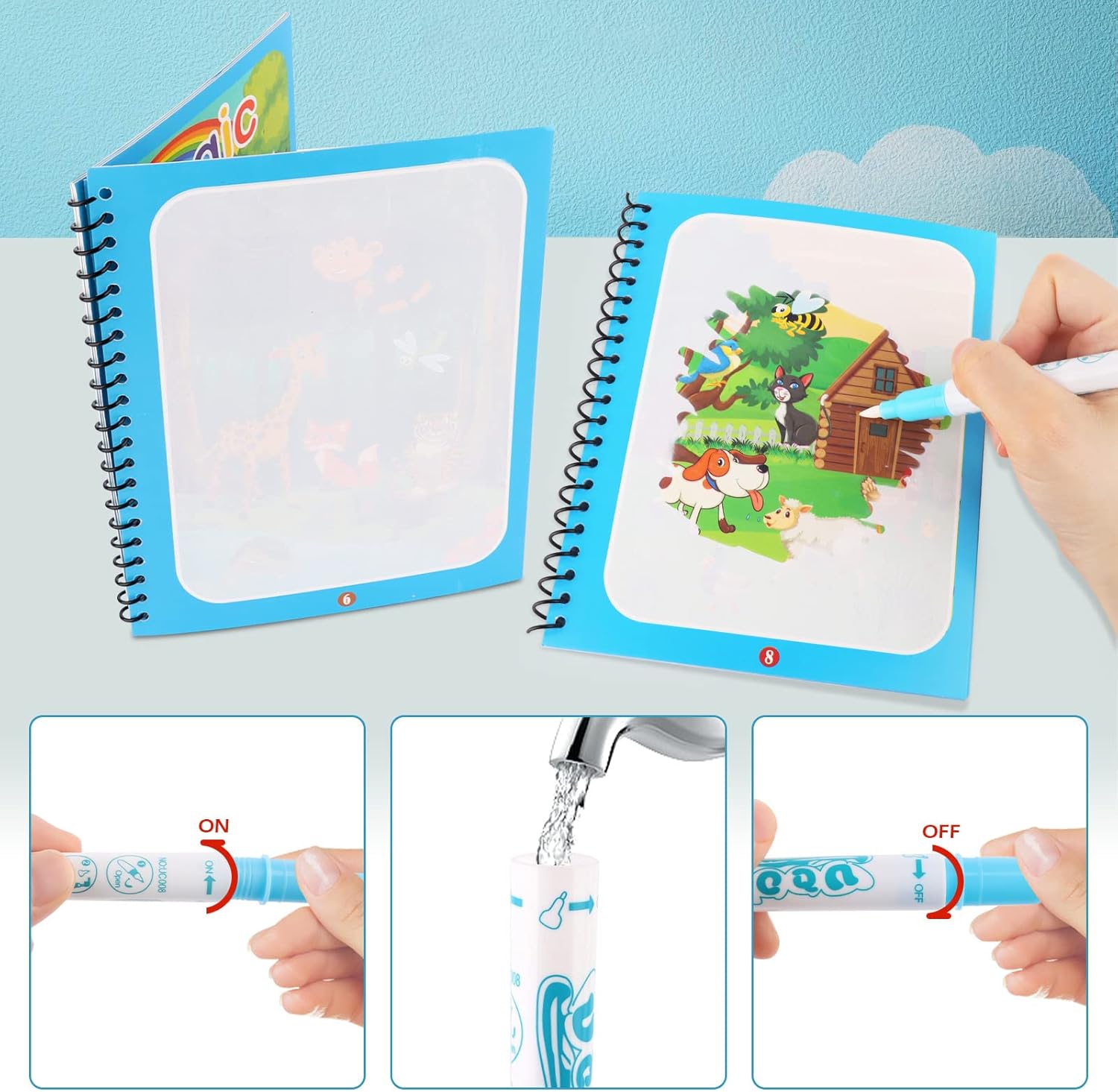 🌈【Libro per acquerelli riutilizzabile】: senza inchiostro e senza vernice, solo con acqua pulita, i bambini si divertono a dipingere senza inchiostro e non dovrete preoccuparvi che il vostro bambino dipinga su pareti, vestiti, divani, ecc. 🌈【Materiali non tossici di alta qualità】: I libri magici di RoserRose sono realizzati con materiali sicuri ed ecologici, in modo che le creazioni dei bambini non siano limitate da inchiostro e vernice. È sufficiente riempire la penna d'acqua per godere di ore di divertimento creativo. Come madre, non dovrete più preoccuparvi che il vostro bambino colori ovunque mentre disegna. 🌈【Facile da usare】: il bambino può utilizzarlo facilmente, basta aggiungere l'acqua sulla nostra penna speciale. Allora i bambini possono dipingere da soli. Dopo 5-10 minuti di asciugatura, il bambino è pronto a dipingere di nuovo. 【Apprendere attraverso il gioco】:Libro da disegno ad acqua con i suoi 4 temi, il bambino può imparare a conoscere gli animali, il mare e molto altro ancora attraverso giochi di disegno, mentre le storie a schema progressivo coinvolgono il bambino nell'apprendimento, esercitando le sue capacità di disegno e di esplorazione. 【Regalo ideale per i bambini】: il nostro album da colorare per bambini è un regalo perfetto per i bambini, può liberarsi e dare una fantasia completa e creatività. Un grande divertimento per il vostro bambino e bambino, ottimo giocattolo educativo per lo sviluppo precoce del bambino.