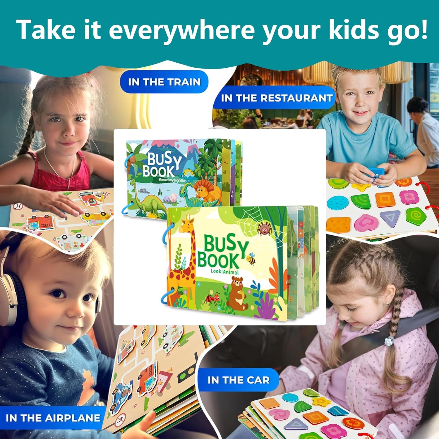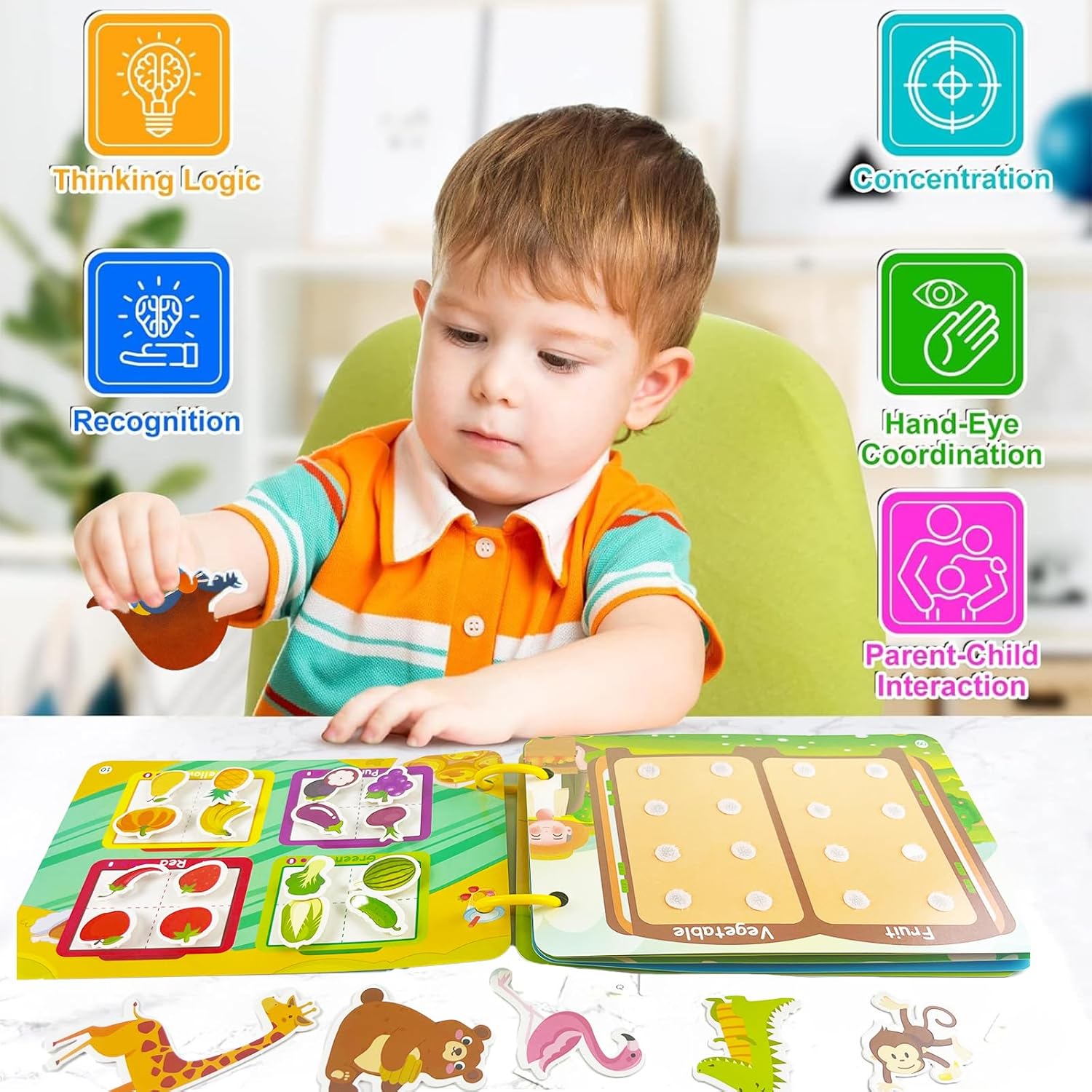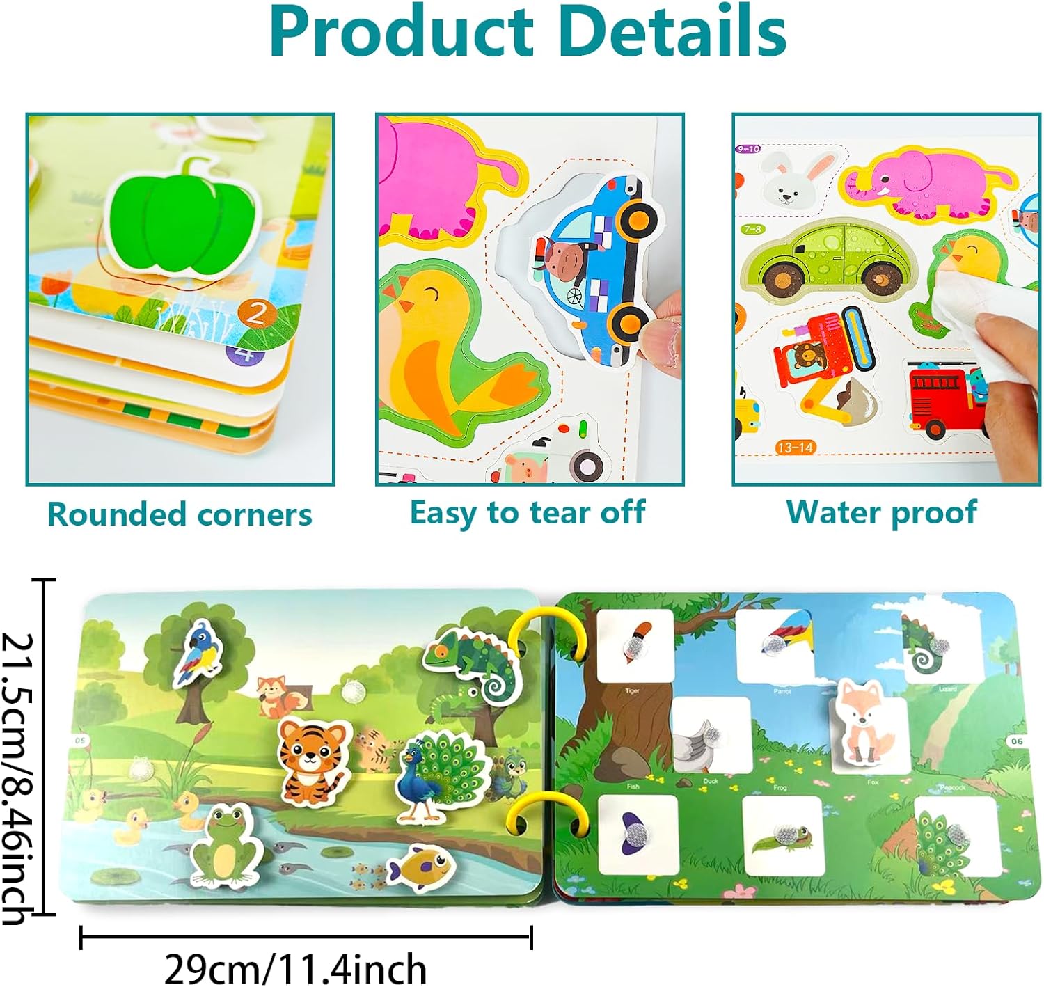 【10 Temi Educativi】 Libro Montessori con animali, dinosauri, veicoli, frutta, verdura, cibi, corpo umano, farfalla e puzzle – stimola l’apprendimento precoce. 【Sviluppo Cognitivo】 Attività interattive che aiutano memoria, logica e capacità di risolvere problemi nei bambini piccoli. 【Abilità Motorie Fini】 Incastri e puzzle migliorano la coordinazione mano-occhio e le capacità manuali. 【Materiale Cartaceo Sicuro】 Carta resistente, bordi arrotondati, adatto ai bambini da 1 a 3 anni, sicuro e durevole. 【Gioco da Viaggio & Regalo】 Compatto e portatile, perfetto per auto, aereo e uscite; ottimo regalo educativo per età prescolare.