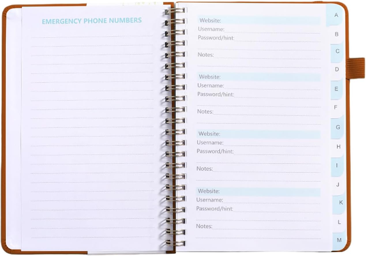 Organizzazione senza sforzo: le schede classificate in ordine alfabetico garantiscono un'etichettatura individuale per accessi sicuri; le linguette laminate impediscono lo strappo, offrendo un rapido accesso ai dati. Accesso senza sforzo: dotato di schede alfabetiche, il nostro libro delle password garantisce una facile e rapida localizzazione delle informazioni di accesso. La rilegatura robusta, la carta spessa e il formato A6 lo rendono facile da trasportare, si appiattisce, riducendo anche le perdite di inchiostro, garantendo la tua privacy. Sicurezza reinventata: garantisce la sicurezza delle password e la chiusura sicura, questo libro di password, progettato in modo discreto senza un titolo sulla parte anteriore, è fissato con un elastico per la tua tranquillità. Regalo creativo: ideale per salvaguardare le password, questo libro serve come regalo premuroso per compleanni, Natale, anno, anniversari, Pasqua e momenti cari con familiari, amici e bambini. Ambito di applicazione: il nostro libro delle password con schede alfabetiche è l'organizzatore di dati ideale, che ti aiuta a proteggere e accedere a importanti indirizzi di siti Web, e-mail, nomi utente e password: garantendo esperienza su varie piattaforme. Ampia applicazione garantita.