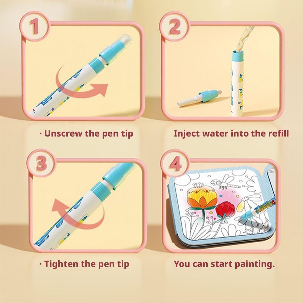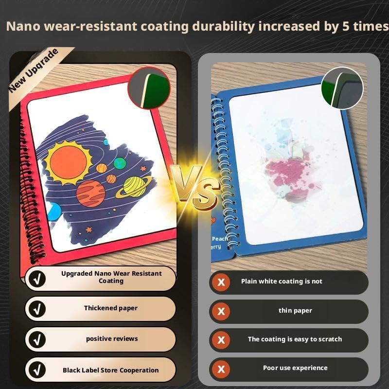 Nessuna creatività dell'inchiostro: non è necessario inchiostro o vernice. Basta aggiungere acqua e colori vivaci appariranno sulla pagina. Questo è un modo pulito per godersi l'arte senza lasciare macchie o richiedere pulizia. Design magico riutilizzabile: il colore scomparirà entro 5-10 minuti dopo l'asciugatura, permettendoti di ricreare le tue scene preferite innumerevoli volte, dai dinosauri alle galassie cosmiche. Esplorazione dell'arte tematica: include disegni dettagliati come mondi sottomarini, tempi preistorici e veicoli futuri, rendendolo perfetto per il relax, la meditazione o l'ispirazione creativa ispiratrice. Esplorazione interattiva: ogni tratto rivela illustrazioni nascoste, combinando arte con sorprese, ed è ideale per alleviare lo stress, praticare l'arte o come regalo per gli appassionati d'arte. Portatile ed essenziale da viaggio: leggero e pieghevole, è perfetto per creare in qualsiasi momento e ovunque durante i viaggi, gli spostamenti o il tempo libero. Facile da mettere in una borsa per godersi l'intrattenimento in qualsiasi momento.
