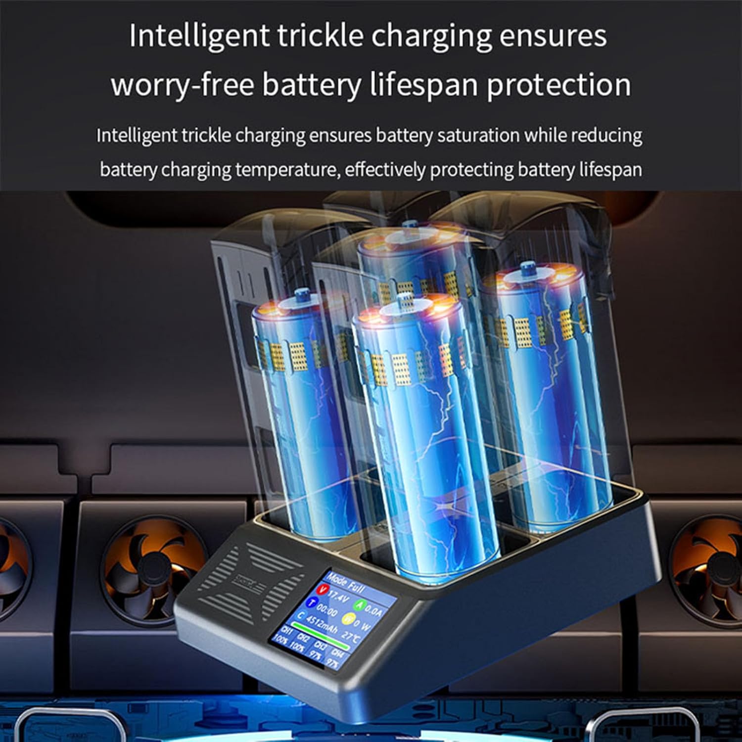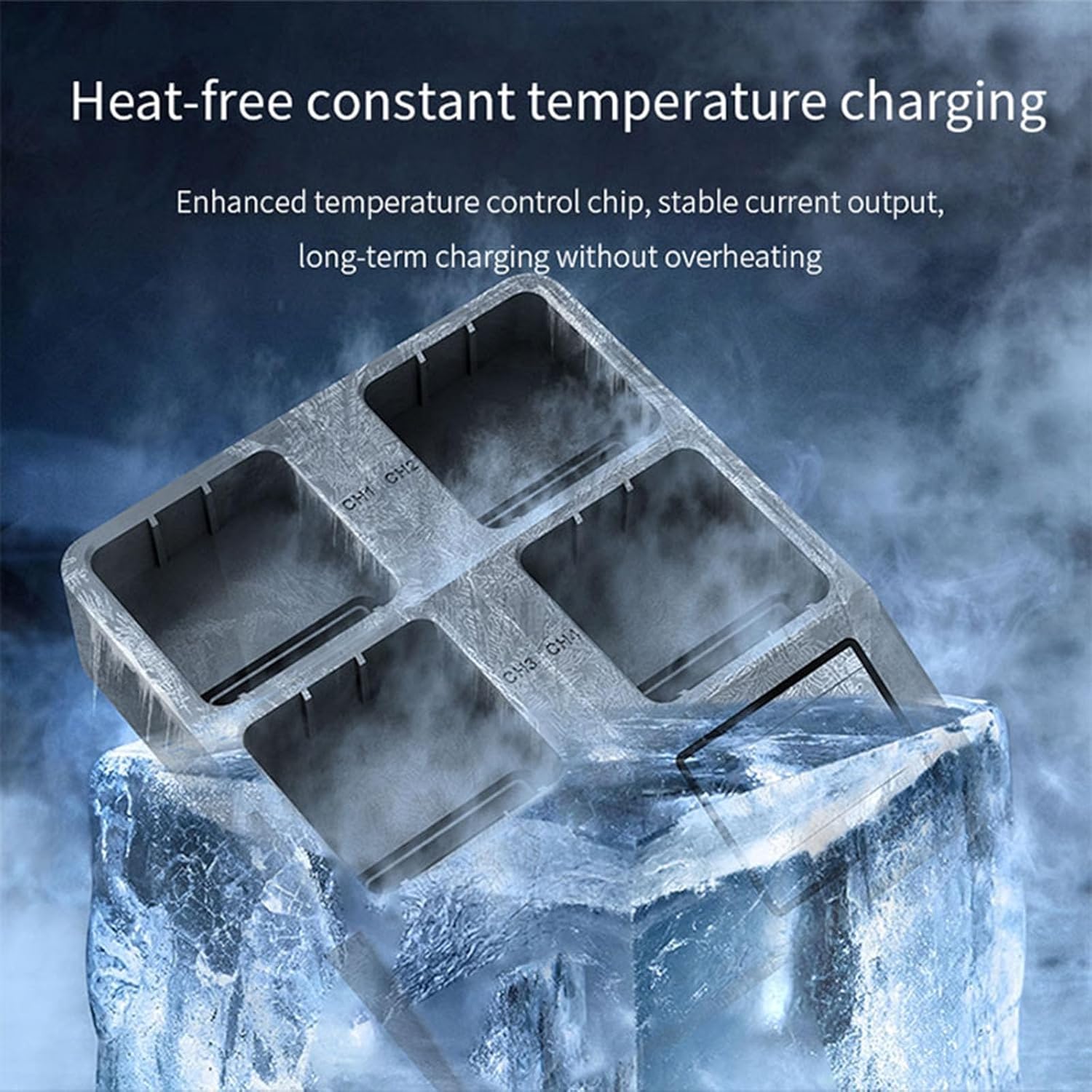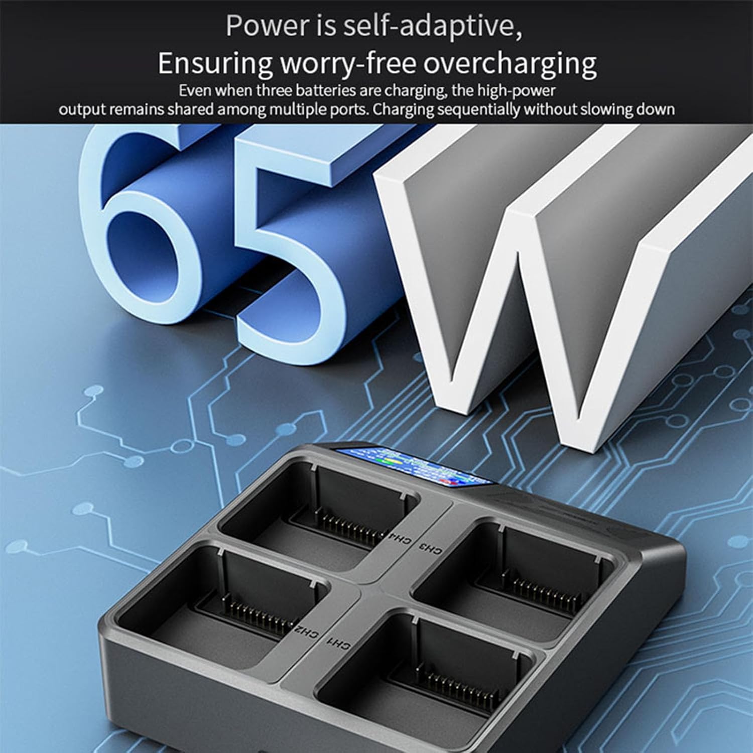 Design personalizzato per batterie Mavic serie 3: progettato per batterie Mavic 3 Pro/Mavic 3 Classic/Mavic 3 Cine/Mavic 3, viene fornito con un cavo USB-C e si consiglia di utilizzare caricabatterie USB-C da 65 W o altri caricabatterie che supportano il protocollo di ricarica rapida USB PD. Efficiente e risparmio di tempo: può caricare fino a quattro batterie Mavic serie 3 (5000 mAh), caricandole in ordine dal livello della batteria più alto al più basso, eliminando il fastidio di collegare e scollegare una per una quando si caricano più batterie. Tutte e quattro le porte supportano la ricarica rapida PD, ci vogliono circa 75 minuti per caricare completamente una batteria da 5000 mAh. La spia non lampeggia alla fine della ricarica. Lo schermo è chiaro a colpo d'occhio: il display LCD mostra i dati in tempo reale delle batterie ricaricabili: tensione, corrente, potenza, tempo di utilizzo, capacità della batteria, temperatura della batteria, avanzamento della carica e livello della batteria; il display LCD può visualizzare il livello di potenza delle quattro batterie, non c'è bisogno di inserire le batterie nel drone, mettere le batterie nel gestore di carica, premere il pulsante della batteria per controllare il livello della batteria; la capacità della batteria può riflettere la durata della batteria. Modalità di ricarica e modalità di archiviazione: premere a lungo il pulsante di accensione per passare dalla modalità di ricarica alla modalità di archiviazione, la modalità di ricarica si carica fino al 100%, la modalità di archiviazione si carica fino al 60% quando il livello della batteria è inferiore al 60%. Quando la batteria è pronta per essere conservata per un lungo periodo di tempo, deve essere mantenuta a circa il 50%-80%, la piena potenza e la bassa potenza causeranno danni alla batteria, quindi la modalità di archiviazione può proteggere le batterie quando non si utilizzano le batterie per un lungo periodo di tempo. Protezione di ricarica: l'hub di ricarica ha otto funzioni di sicurezza per proteggere da sovraccarico, sovratensione e cortocircuiti, garantendo la sicurezza delle batterie e dei dispositivi. La corrente di mantenimento intelligente garantisce la saturazione della batteria riducendo la temperatura di carica della batteria per proteggere efficacemente la durata della batteria.