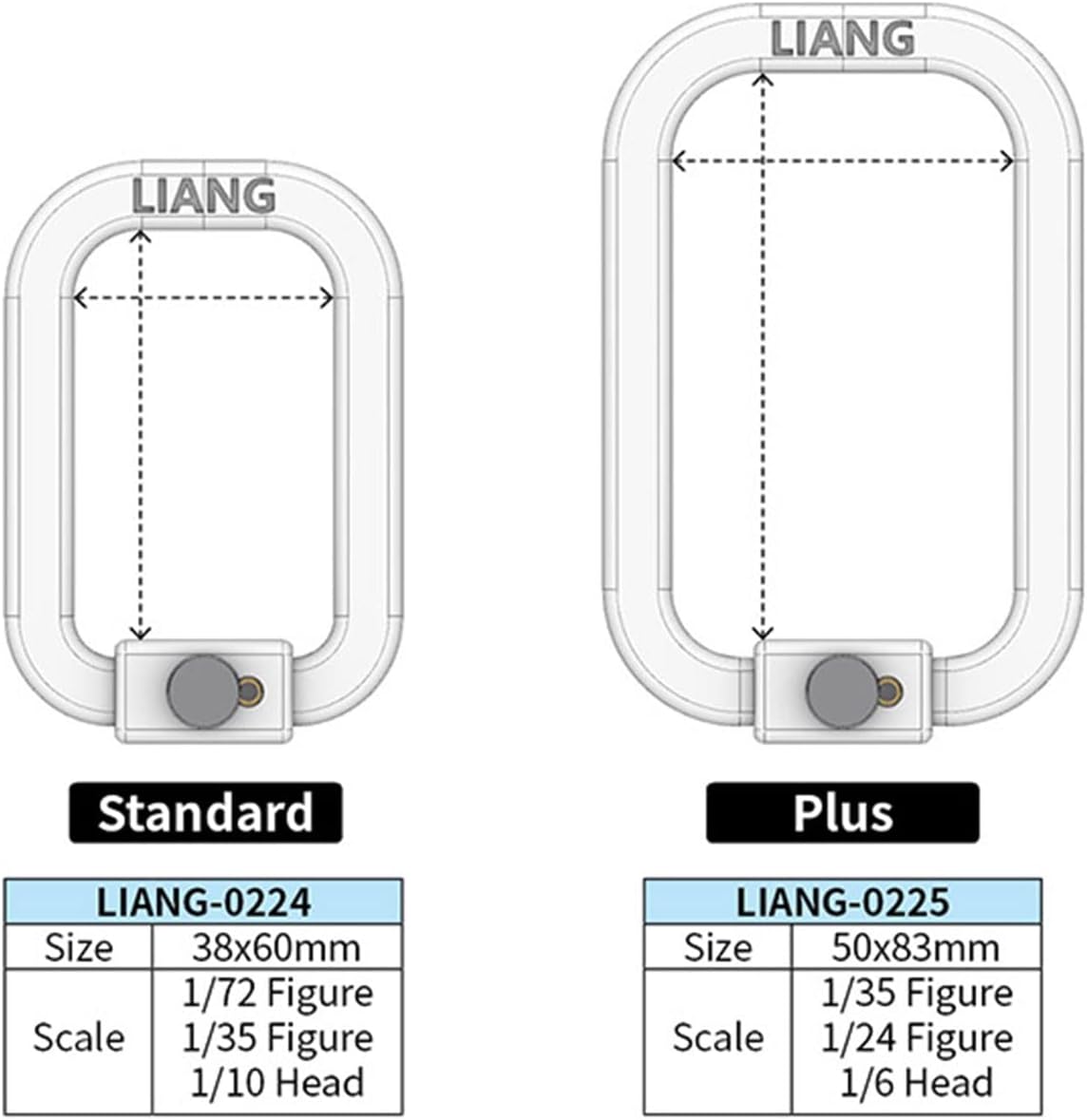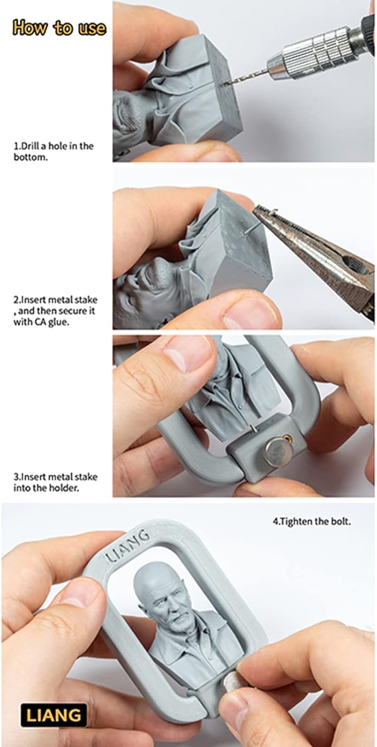 Doppio foro di posizionamento, rotazione di 360°. Fornire supporto per il pennello durante la verniciatura. Realizzato in materiale di alta qualità, comodo da tenere. Tipi: Standard/Plus (opzionale) Dimensioni standard: 38 x 60 mm. Scala standard: 1/72 Figura, 1/35 Figura, 1/10 Testa. Taglie forti: 50 x 83 mm. Scala Plus: figura 1/35, figura 1/24, testa 1/6.