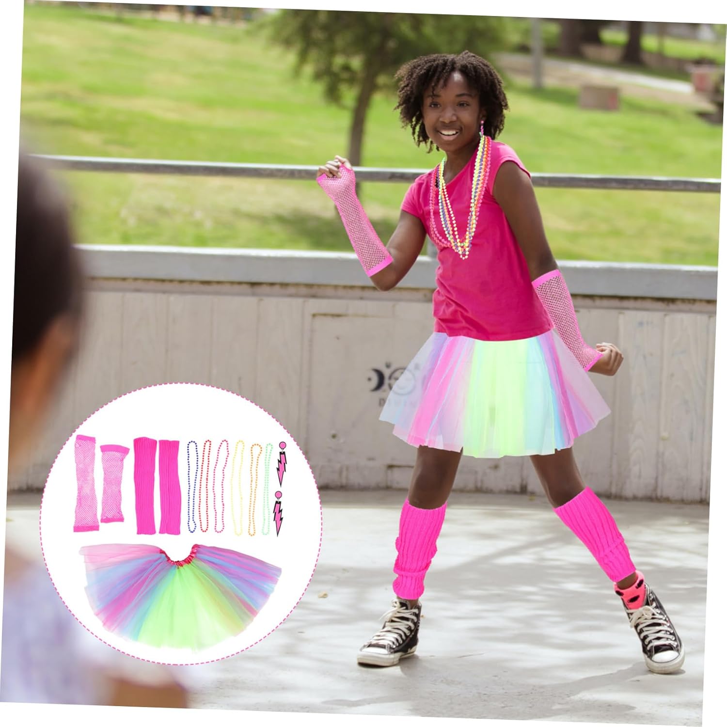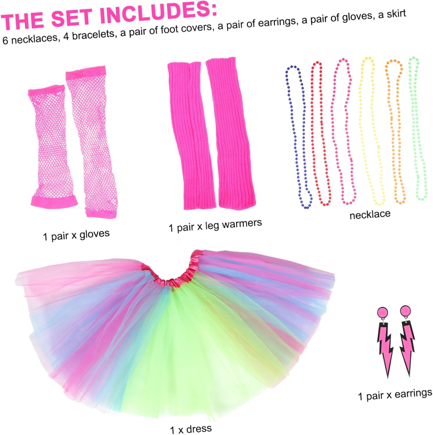 dei pacchetti 1 paio di guanti 1 paio di scaldamuscoli 1 paio di orecchini 6 collane 1 vestito caratteristiche - : orecchini retrò colorati. - materiale: set di costumi da festa vintage in poliestere. - dimensione: 4500x4000x100 cm/ 1768x1572x039 pollici accessori per costumi da donna. : meravigliosi set di accessori per il ballo di fine anno, feste con decorazioni artistiche, feste anni '80 e così via, orecchini colorati da donna. - Gli accessori del costume sono realizzati in materiali di poliestere, sono comodi per una fuori ballando, una cerimonia di matrimonio. Accessori anni '80 per - adatto a donne e signore da indossare, alla moda ed elegante, possiede una maxi gonna da donna vintage. - è bello condividerli con i tuoi familiari, amici o colleghi, lo faranno. Costumi anni '80 per - il brillante, molto delicato, può farti diventare più accattivante e aiutarti ad attirare più attenzione. informazioni sulla merce Accessori anni '80 che possono farti diventare più accattivante e aiutarti ad attirare più attenzione. anni '80 da donna, il design in stile retrò con una trama confortevole ne garantirà la praticabilità e la popolarità come costumi per feste o feste di cosplay I costumi anni '80 per questo kit di accessori per costumi anni '80 sono realizzati con materiale in poliestere per un utilizzo sicuro e duraturo