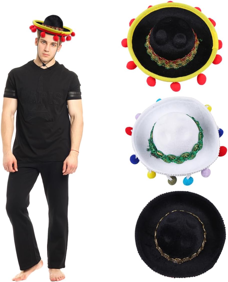 lista dei pacchetti 2 x cappello caratteristiche - : nero. - materiale: poliestere. : crea il tuo e la tua famiglia per portarli più divertenti e sorprendere il cappello messicano. : può facilmente renderti accattivante nella mini festa messicana. - dimensioni cm. 14,5x14,5x6 circa. - realizzato in materiale, è un mini cappello da carnevale leggero, che non sbiadisce e non deforma. Cappello con palla di pelo - crea un'atmosfera piacevole e vivace per il mini cappellino da festa. cappellino messico - per feste in maschera, feste in maschera, carnevale, concerti, feste messicane e balli. - La lavorazione squisita lo rende indossabile e rimane alla moda durante le feste. descrizione della merce cappello messicano indossando questo berretto, sarai il più attraente del pubblico. questo attraente cappello è realizzato con un design per una decorazione personalizzata. stai cercando qualcosa di e innovativo per l'arredamento dei tuoi ? allora, questo mini cappello festivo con palla di pelo sarà un'ottima scelta per te