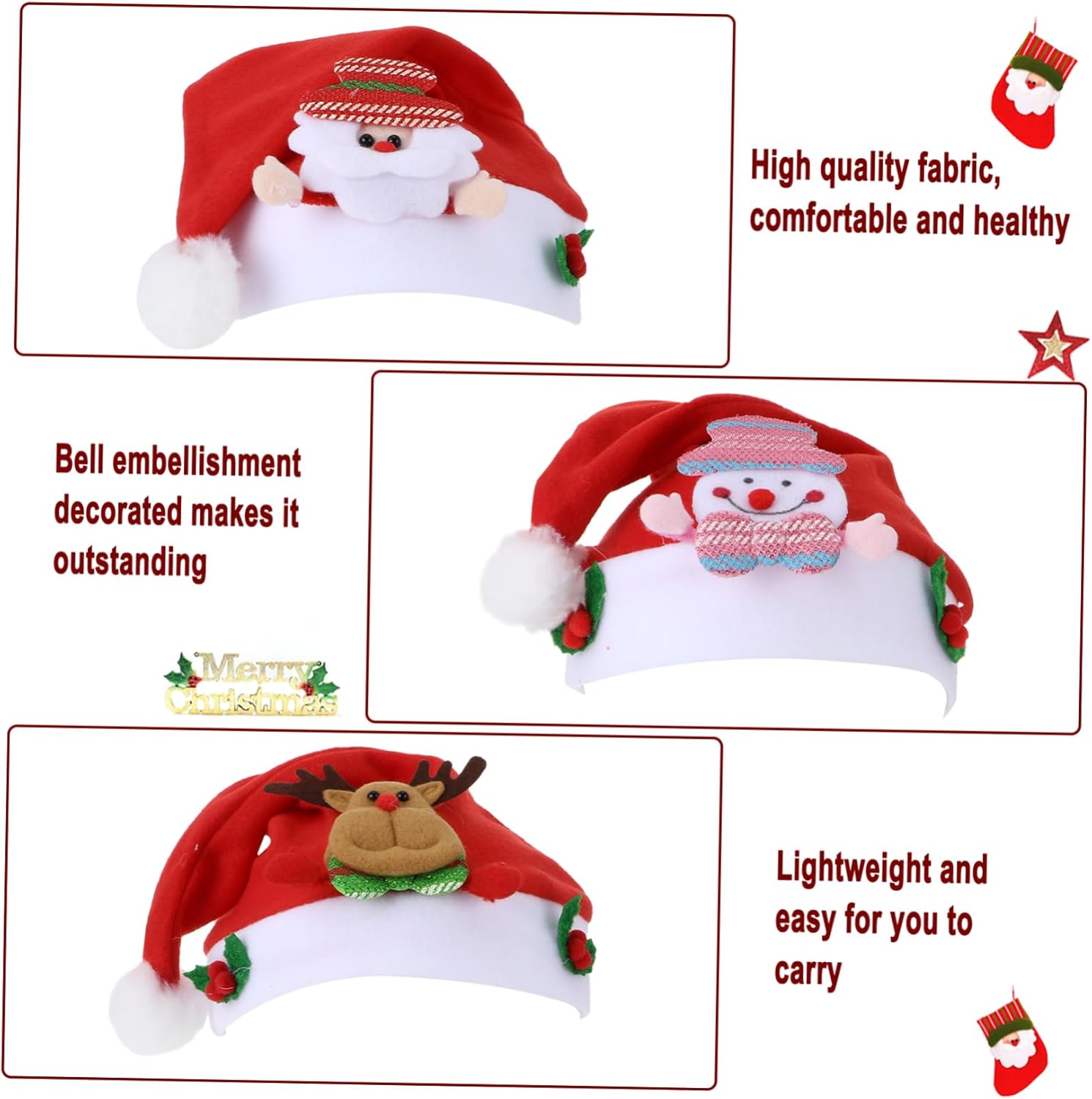 Descrizione prodotto dei pacchetti 3 cappelli Natale Caratteristiche - Dimensioni: circa 30,00X24,50X1,00 cm/11,79X9,63X0,39 pollici Cappellini natalizi per . - Materiale: Cappellini natalizi in stoffa per . - Colore: Cappellino per feste Natale per assortito. -Informazioni sul prodotto: Cappello natalizio per - fattura, curata in ogni dettaglio per conferire al cappello invernale per un aspetto meraviglioso. - Può essere utilizzato per feste Natale, addii al celibato, spettacoli teatrali, ecc. Cappello invernale per . - Questo cappello ha una consistenza e una sensazione confortevole, puoi acquistarlo con tranquillità Caps. - Decora i tuoi in adorabile e accattivante durante gli natalizi all'aperto con i cappellini per . - Realizzato con materiali qualità, fattura e non facilmente danneggiabile. Cappellini natalizi per . Descrizione della merce Cappello per la festa Natale dei I tuoi possono indossarlo festa Natale o semplicemente per l'intrattenimento. Forniture natalizie È un accessorio per costumi per feste in maschera, , feste Natale, vacanze invernali, feste Capodanno, cosplay, feste a tema, ecc. Cappello per la festa Natale Questo cappello Natale per è fatto ed è adorabile Avviso di sicurezza 1