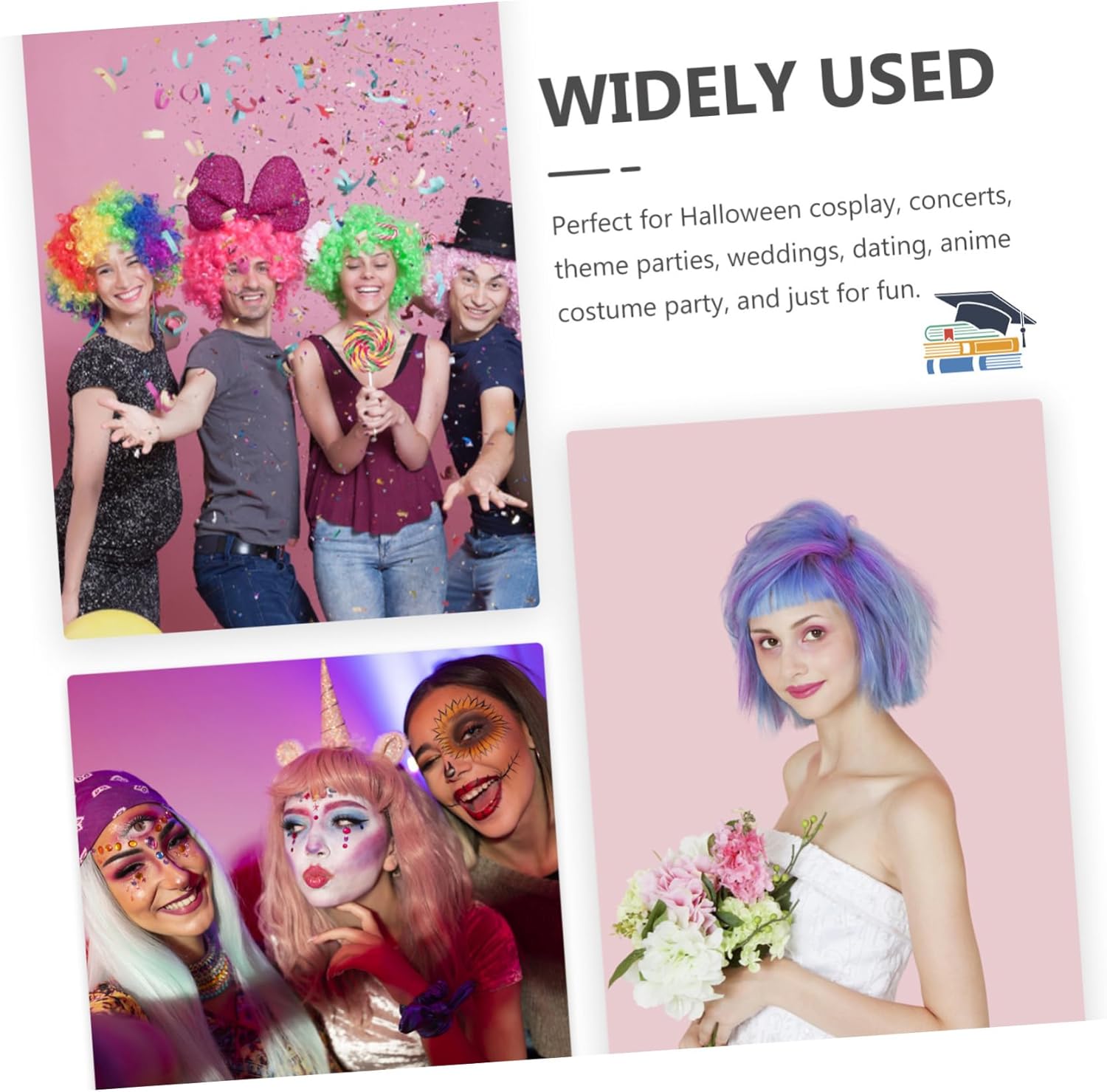 dei pacchetti 4 parrucche Caratteristiche -Dimensioni: 30,00X17,00X0,30 cm/11,79X6,68X0,12 pollici parrucche per feste -Materiale: parrucche divertenti in fibra ad alta temperatura -Colore: parrucche cosplay colorate assortite - Le parrucche alla moda con lavorazione raffinata e aspetto creativo garantiscono la popolarità e la praticità delle parrucche colorate per le feste. - Taglia unica adatta alla maggior degli adulti, adatta a uomini che a donne; parrucche per feste in maschera facili da indossare e da togliere. - Le parrucche Cosplay lucide sono leggere e portatili, molto comode per portare con sé parrucche Cosplay alla moda. - Le parrucche Charming Hair hanno un design semplice, ma sono pratiche da usare, il che ti garantirà una buona esperienza d'uso con le parrucche colorate. - Grazie alla perfetta lavorazione di queste parrucche colorate, la tua esperienza d'uso sarà ottimale. Informazioni sulle merci parrucche da donna Puoi provare a cambiare i tuoi stili quotidiani, tranquilli, vivaci, adorabili, incantevoli e così via. parrucche per feste in costume Queste parrucche sono realizzate in materiale stabile, che è un uso a lungo termine. finti alla moda Queste parrucche spazzolate sono adatte a tutte le occasioni