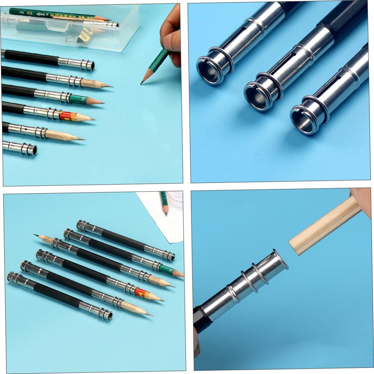 Estensione per matite per artisti: una meravigliosa scelta per i tuoi amici, bambini, compagni di classe o altre persone che ne fanno un uso quotidiano. Estensione per portapenne: puoi darla ai tuoi compagni di classe, colleghi, bambini, insegnanti, pittori, artisti, ecc., manicotto di estensione per matite Portapenne estensibile: leggero e portatile, puoi metterlo nel tuo astuccio, nella scatola della cancelleria, nella borsa, nel portapenne Estensori per matite: utilizzano materiale in acciaio inossidabile di qualità e di pregevole fattura, durevole e robusto, supporto per estensione per matite. Porta-estensore per matita, realizzato in acciaio inossidabile, per l'uso come prolunga per matita.