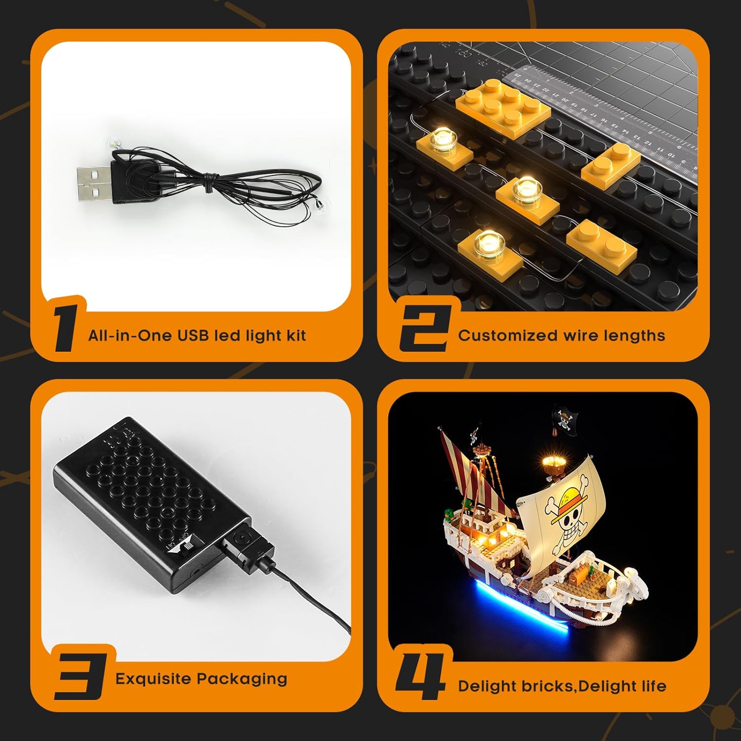 Installazione semplice: il kit LED all-in-one è progettato con layout di cavi e spaziatura specifici per il modello LEGO 75639 Nave pirata Vogue Merry. Non è richiesto alcun assemblaggio separato, è adatto ai principianti. (NON include il set LEGO). Cablaggio nascosto: la spaziatura premisurata garantisce una facile installazione e un cablaggio nascosto, preservando l'integrità dell'aspetto del tuo modello LEGO. Il kit LIGHTAILING è perfetto per gli abiti. Istruzioni complete: goditi video online chiari e passo passo e istruzioni cartacee. Le nostre istruzioni soddisfano tutti i livelli di esperienza, garantendo un processo di installazione della luce LED fluido e senza problemi. Artigianato esperto: progettati con meticolosa attenzione ai dettagli, i nostri pezzi si adattano perfettamente al modello LEGO. Una confezione elegante aggiunge un packaging elegante e raffinato, rendendolo un'ottima scelta da condividere con gli altri. Supporto affidabile: LIGHTAILING si concentra sulla fornitura di un processo di installazione semplice e divertente per illuminare il tuo modello Vogue Merry Pirate Ship. Se avete domande, non esitate a contattarci.