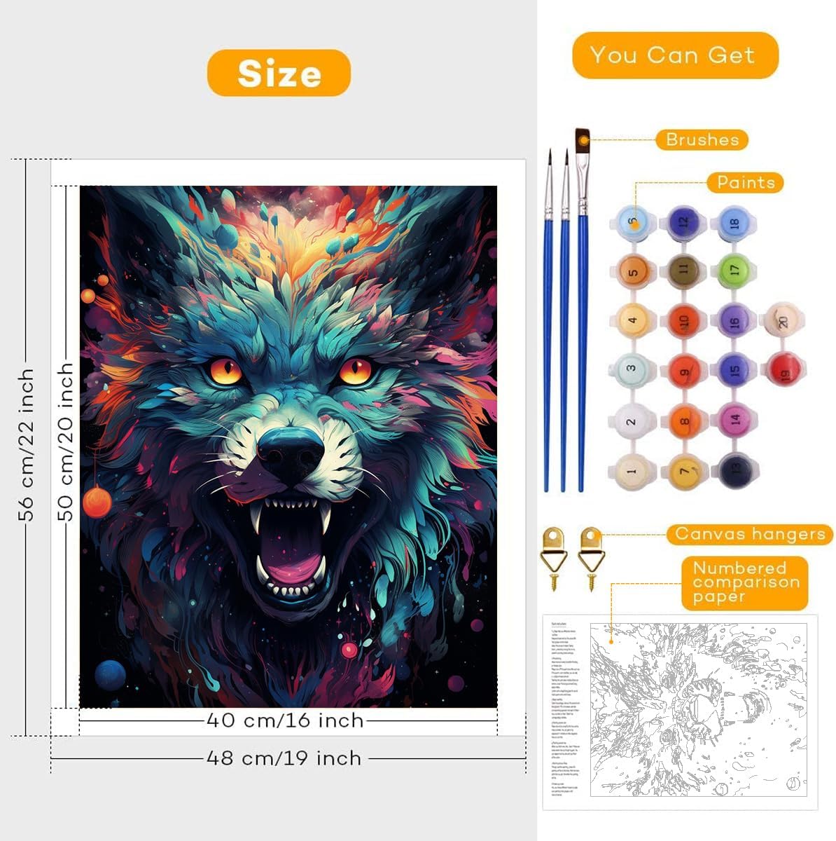 LiHEQING Kit di pittura digitale Lupo Pittura a olio Dipingi con i numeri Kit per bambini su tela per la decorazione della parete Senza cornice (60x75 cm)