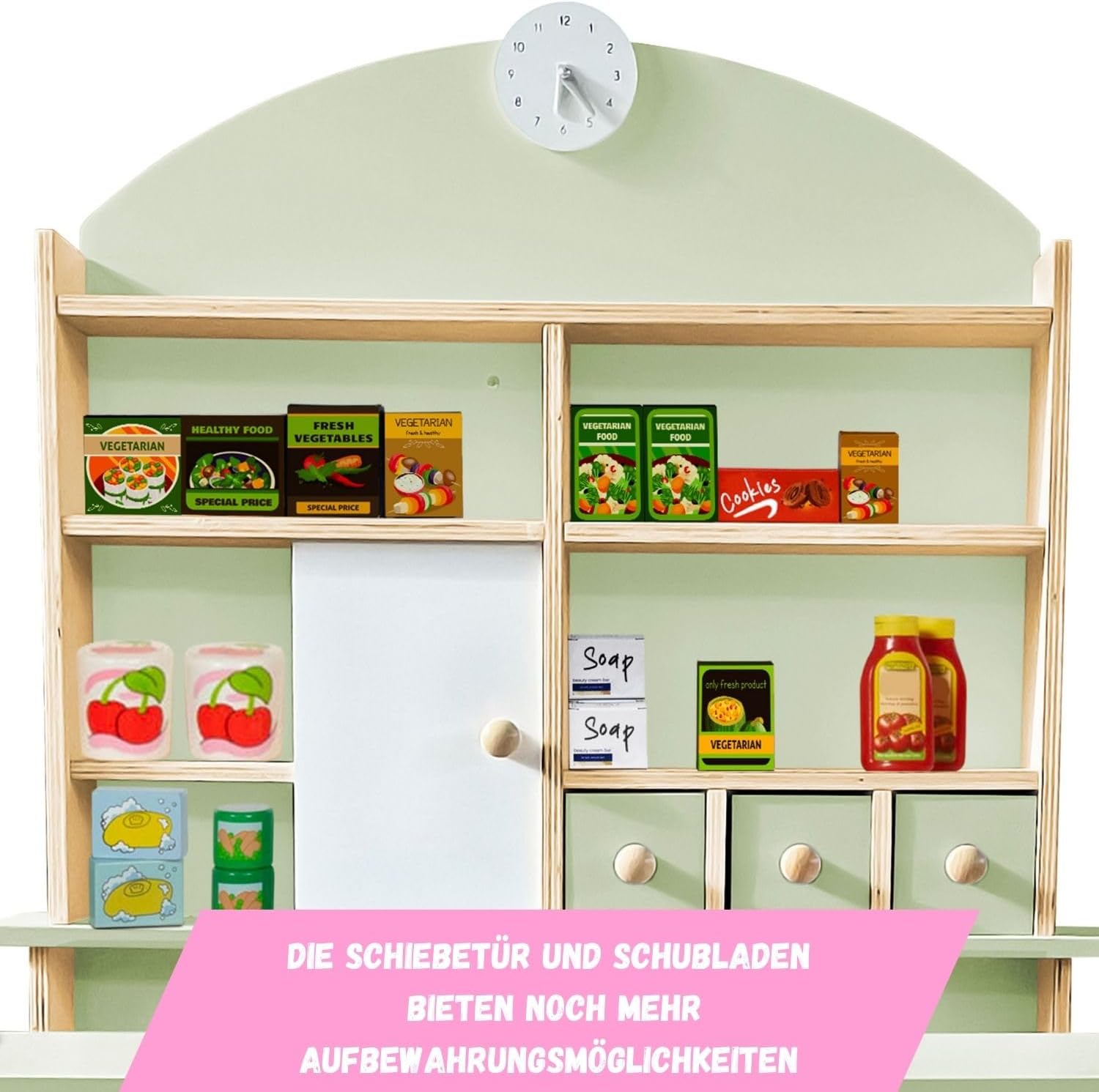 QUALITÀ: il negozio Lilly realizzato in compensato di pino e pannelli MDF ha una buona fattura e un'elevata stabilità, adatto ai bambini, i colori tenui sono attraenti senza essere opprimenti. ATTREZZATURA: Negozio, bancone di vendita, cassetti, scaffali, elemento di collegamento: lo stand di vendita Lilly offre molte possibilità per un divertimento illimitato con la famiglia. APPRENDIMENTO: i giochi di ruolo promuovono le abilità sociali e la creatività dei tuoi figli: il nostro negozio Lilly ti invita a farlo. PRATICO: le superfici del negozio Lilly sono lavabili e facili da pulire. I colori sono ecologici e sicuri. Il massimo divertimento per i tuoi bambini. Fai da te: kit da montare, anche papà si diverte ;) Negozio di alimentari con istruzioni di montaggio dettagliate e illustrate per un montaggio rapido, (L x A x L): ca. 92×117×81 centimetri