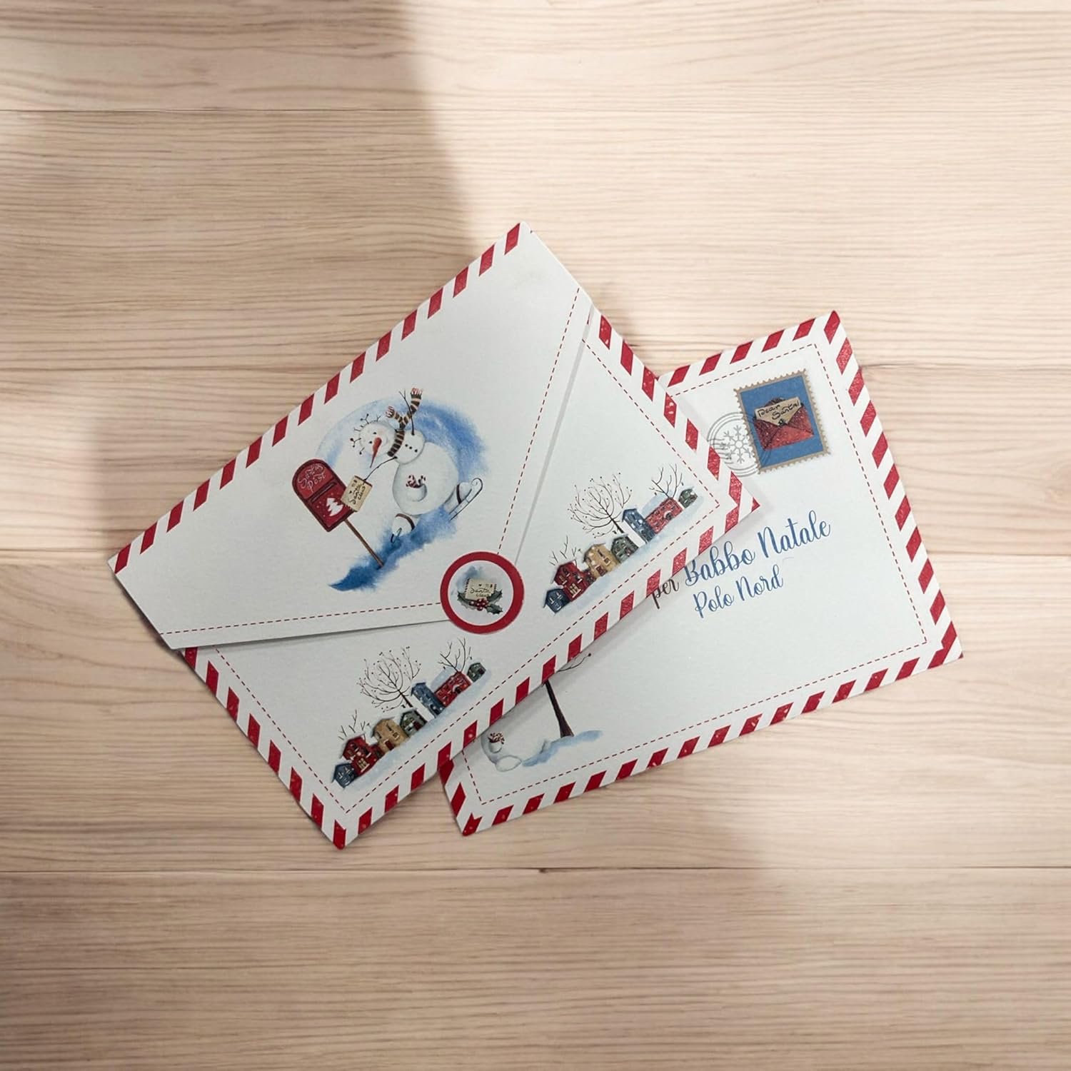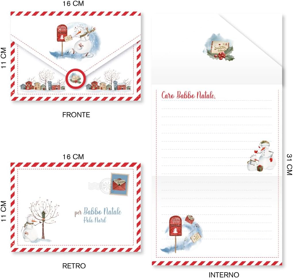 Design Natalizio: Questa busta da lettera presenta un'illustrazione festiva con un simpatico pupazzo di neve, un albero di Natale e decorazioni natalizie. Dimensioni Compatte: La busta misura 16 cm x 11 cm, una dimensione pratica per contenere biglietti o lettere. Materiale di Qualità: Realizzata in cartoncino resistente, garantisce una buona protezione per il contenuto. Dettagli Personalizzati: Sul retro è presente un'area dedicata per scrivere l'indirizzo del destinatario, mentre all'interno ci sono linee guida per il testo. Atmosfera Natalizia: Il design allegro e colorato diffonde lo spirito delle feste, rendendola perfetta per auguri natalizi.