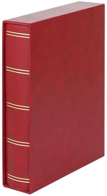 Album con rilegatura imbottita e in similpelle, e custodia in colore coordinato in cartone laminato. 60 pagine bianche (30 fogli) con doppia giuntura in lino, con 10 strisce e doppio foglio intercalato in carta pergamena. Formato: 240x 320 mm. Con linee dorate sulla copertina e sul retro.