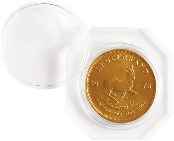 Anello di spallamento ottagonale in pregiato vetro acrilico con formato esterno 50x50 mm e una capsula per monete LINDNER: