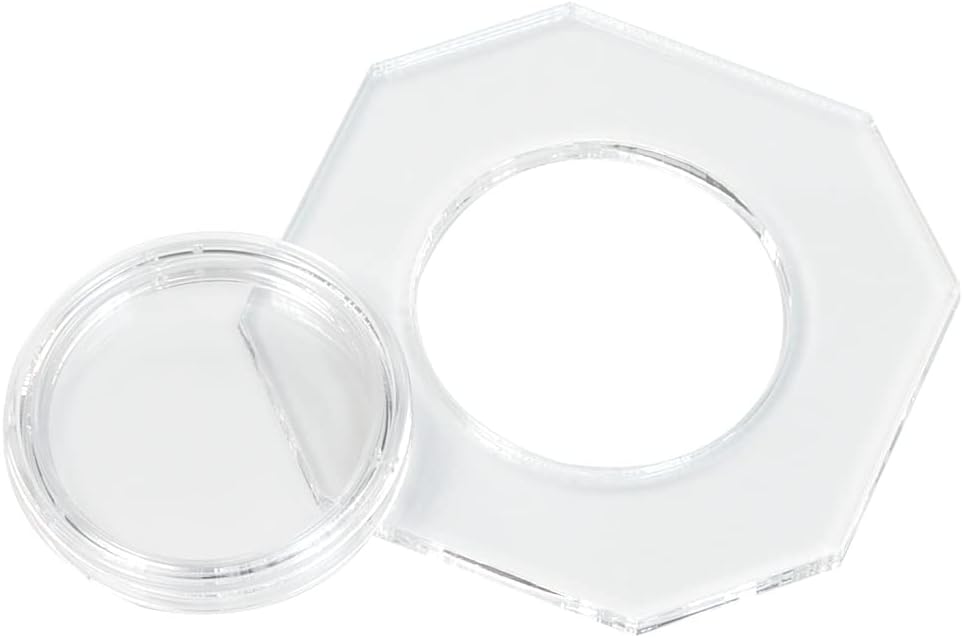 Anello di spallamento ottagonale in pregiato vetro acrilico con formato esterno 50x50 mm e una capsula per monete LINDNER: