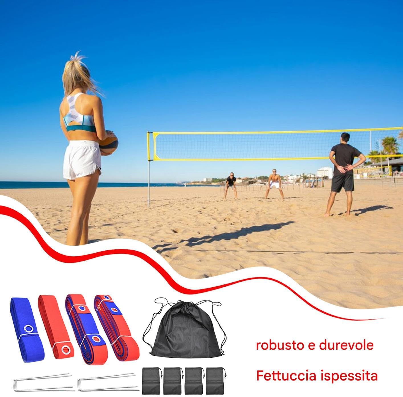 Materiale Cinghie Solido: Cinghie tessute robuste contrastano forze di strappo e trazione, garantendo fissaggio sicuro a lungo termine con cucitura rinforzata per utilizzo duraturo in contesti pallavolistici spiaggia Montaggio Rapido Ovunque: Design pieghevole e portatile per assemblaggio immediato, crea un campo da pallavolo su spiaggia parco o giardino senza difficoltà con trasporto semplificato Marcatura Chiara: Bordo rinforzato e spesso garantisce linee stabili per campi da pallavolo, affidabile su sabbia ed per precisione di gioco ottimale durante le partite Montaggio Senza Strumenti: Linee per pallavolo spiaggia ad alta visibilità con assemblaggio immediato, progettate per velocità di installazione senza attrezzi, offrono praticità e prestazioni ottimali durante l'uso Marcature Adattabili: Adatte per campi da volley e ideali per badminton, sono perfette per divertimento in spiaggia, parco o giardino con amici, offrendo versatilità per attività all'aperto e migliorando l'esperienza ricreativa con facilità