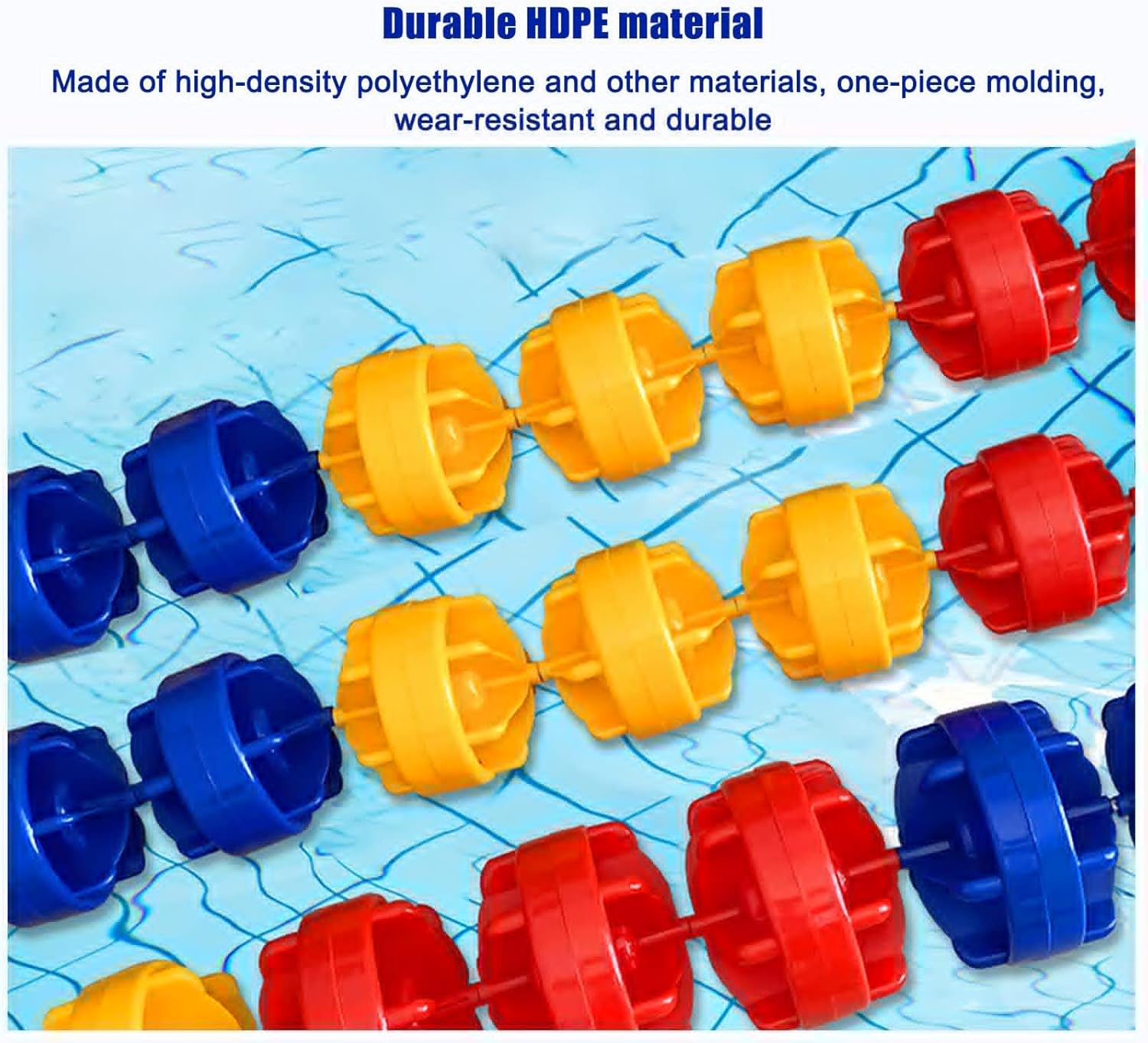 【Divisore per corsia della piscina durevole】 Realizzato con fune in nylon/acciaio di alta qualità + boa in plastica HDPE, resistente e leggero, forte galleggiabilità, protezione ambientale, resistente all'usura, anti-ultravioletto, riutilizzabile. 【Visibilità sicura ed efficace】 I colori vivaci delle boe sono facili da identificare nell'acqua e possono distinguere chiaramente le estremità profonde e poco profonde della piscina e le corsie di nuoto. Mantieni tutti al sicuro mentre nuoti. 【Facile da installare】 Fissare entrambe le estremità della linea della boa di sicurezza agli ancoraggi a muro con i nostri ganci. È molto stabile dopo il fissaggio, non si allenta né cade e può essere utilizzato a lungo. 【Specifiche della corda divisoria per piscine】 Dimensioni di ciascuna boa: 12,5 cm (4 7/8") x 12 cm (4 3/4"). Quantità boe piscina: 8 / m. 【Ampia applicazione】 Utilizzato per separare corsie e aree di nuoto, ampiamente utilizzato in piscine, corsi d'acqua, aree pericolose, spiagge, ostacoli bassi, ecc.