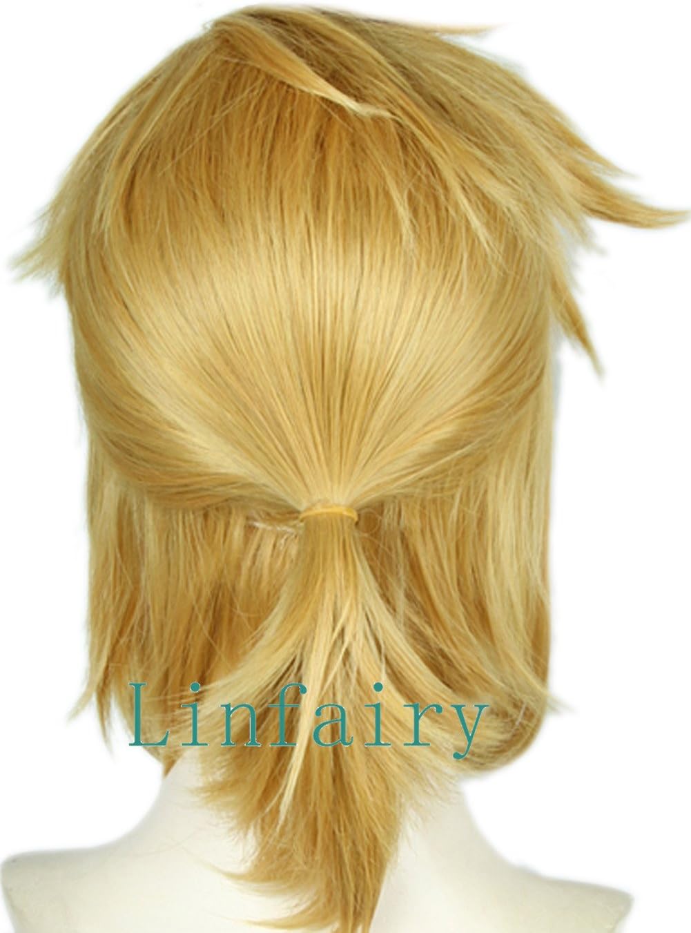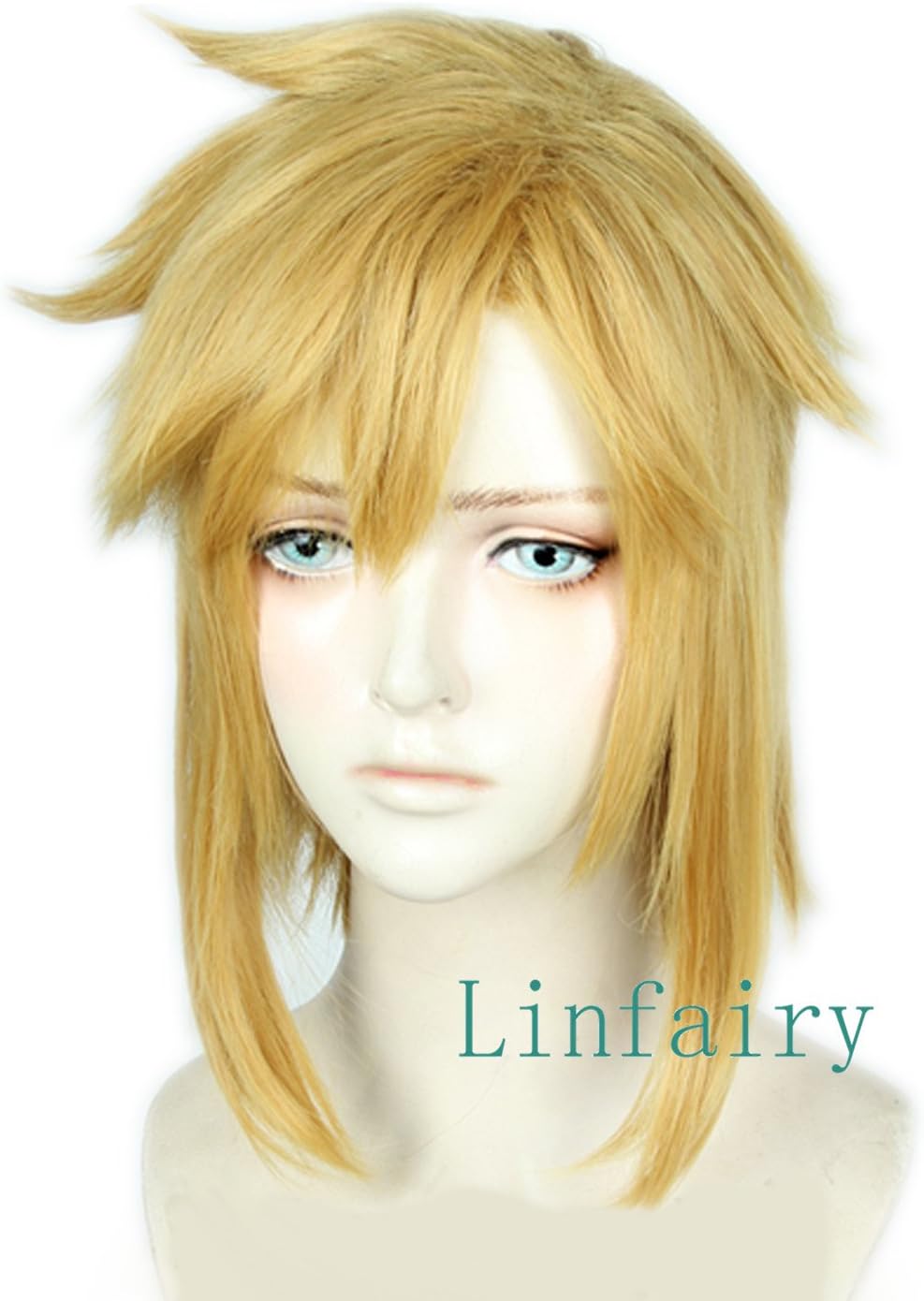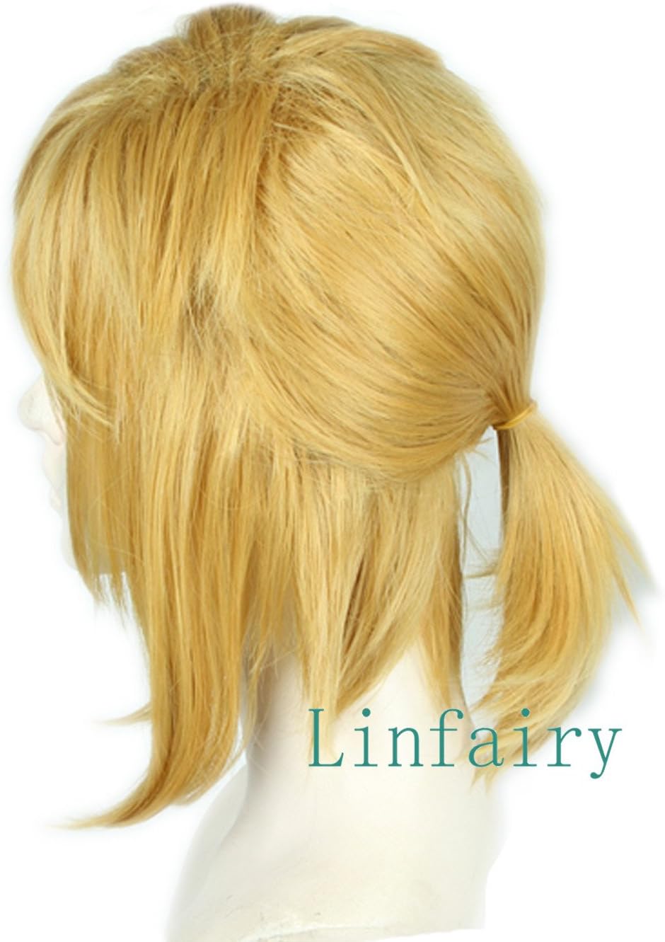 Linfairy Parrucca bionda corta parrucca cosplay di Halloween per uomini intrecciata con 2 orecchie da elfo