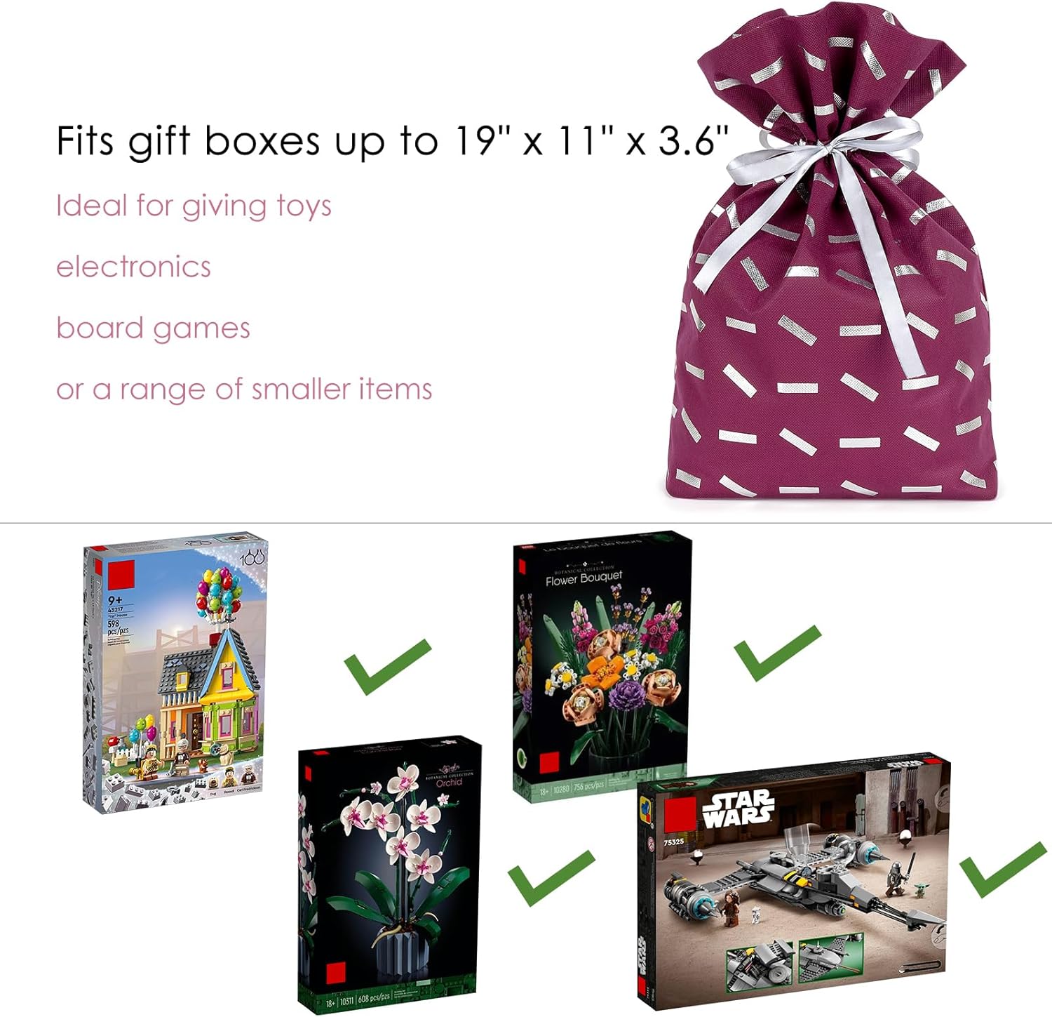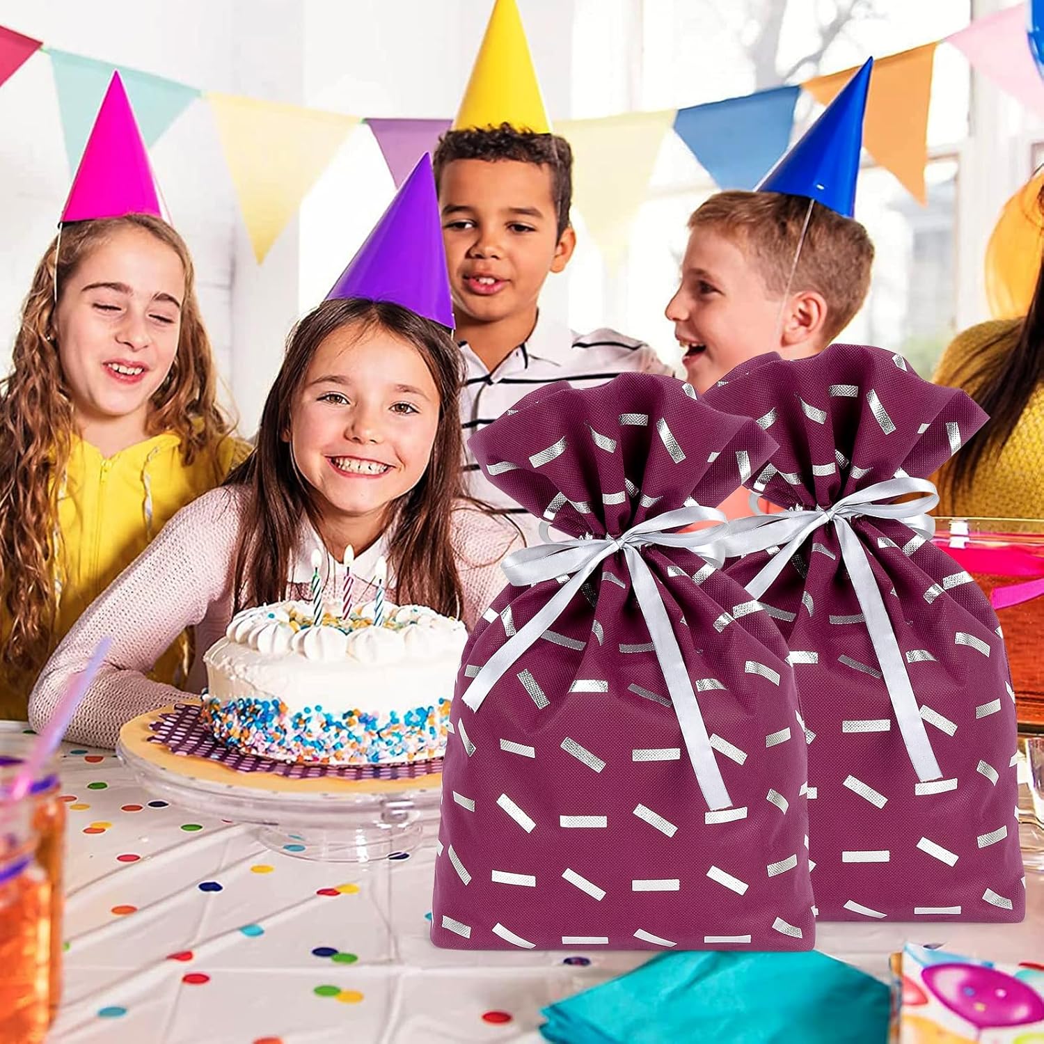 Borsa tote regalo di compleanno realizzata in tessuto non tessuto, riutilizzabile, resistente e non facile da rompere. Borsa tote grande adatta per scatole regalo fino a 19 x 11 x 3,6 pollici, ideale per regalare giocattoli, dispositivi elettronici, giochi da tavolo o una collezione di piccoli oggetti. I sacchetti regalo ecologici sono alla moda e belli, adatti alla maggior parte delle feste, come compleanni, matrimoni, celebrazioni. Dimensioni borsa tote: 60 x 45 cm Contenuto della confezione: 4 sacchetti regalo riutilizzabili