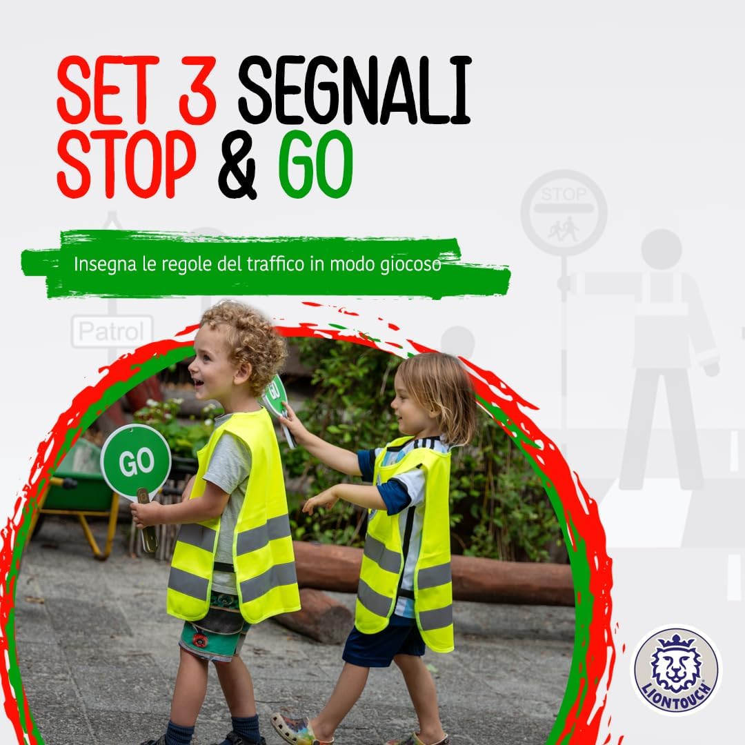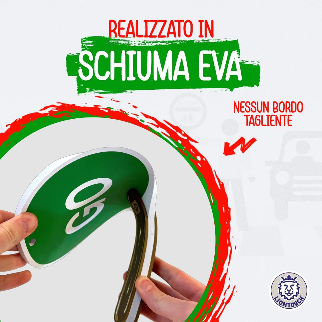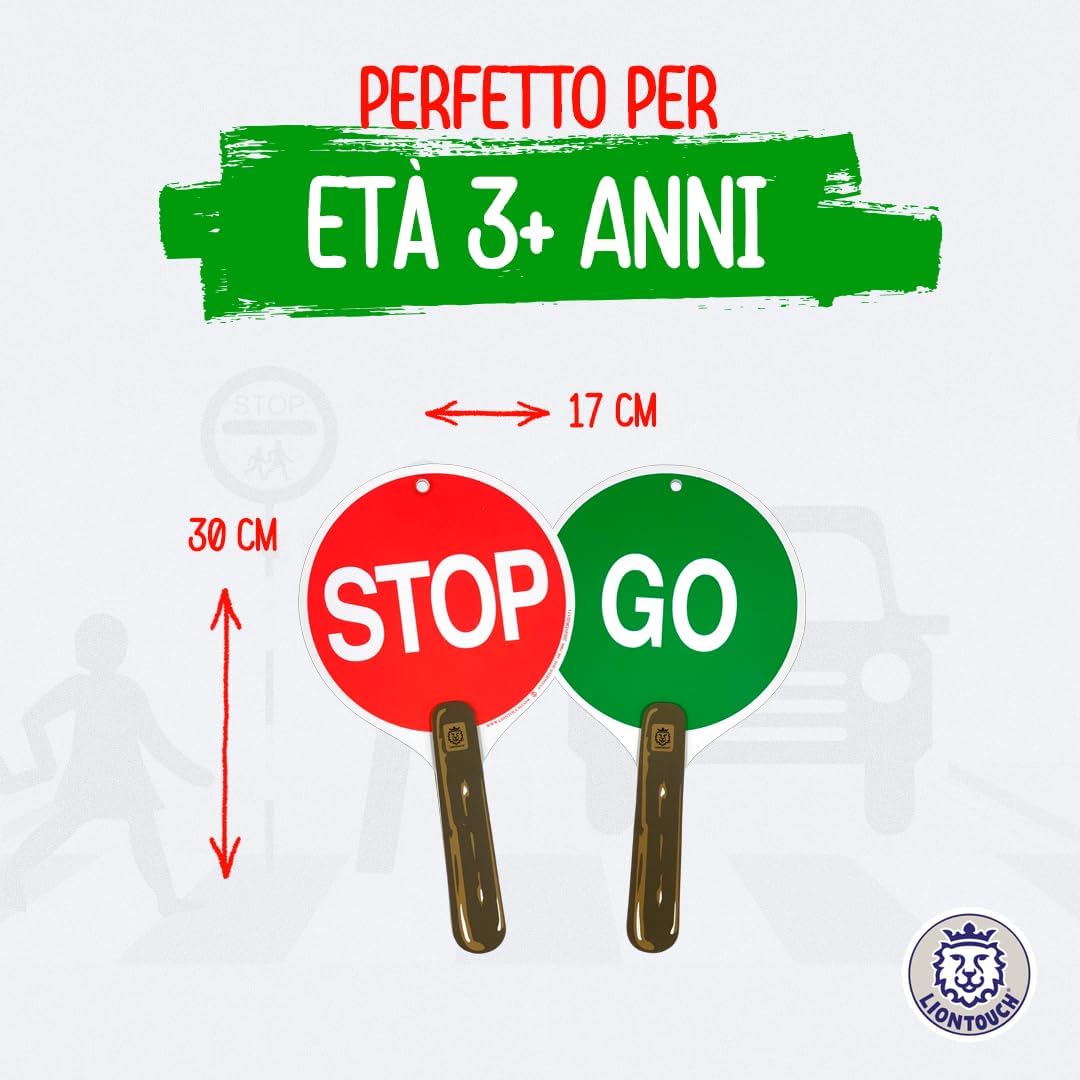 GIOCO EDUCATIVO per bambini e bambine. Insegna al tuo bambino le regole del traffico, la sicurezza e come mostrare prudenza per le strade usando il segnale "Stop & Go" di Liontouch. I SEGNALI "STOP & GO" sono fatti di schiuma EVA flessibile che garantisce durata e sicurezza. Ogni segnale "Stop & Go" misura 30 x 17 x 1,3 cm ed è perfetto per ogni bambino o bambina. Questo set include tre segnali. CON I SUOI COLORI ACCESI E ACCATTIVANTI, il segnale "Stop & Go" di Liontouch offre un'eccellente visibilità all'aperto, mentre il manico simile al legno aggiunge un tocco di stile a questo giocattolo orientato alla sicurezza. Ideale per i bambini piccoli, questo segnale di alta qualità è sia resistente che divertente da usare. TESTATO PER LA SICUREZZA in conformità con gli standard europei e americani e non usa stecche interne. Completamente sicuro e senza materiali tossici. PROGETTATO IN DANIMARCA, strumenti educativi per bambini con un focus sui dettagli e sulla qualità mirati a ispirare i bambini ad essere attivi. Liontouch incoraggia il movimento fisico e offre ai bambini un divertimento senza schermi.
