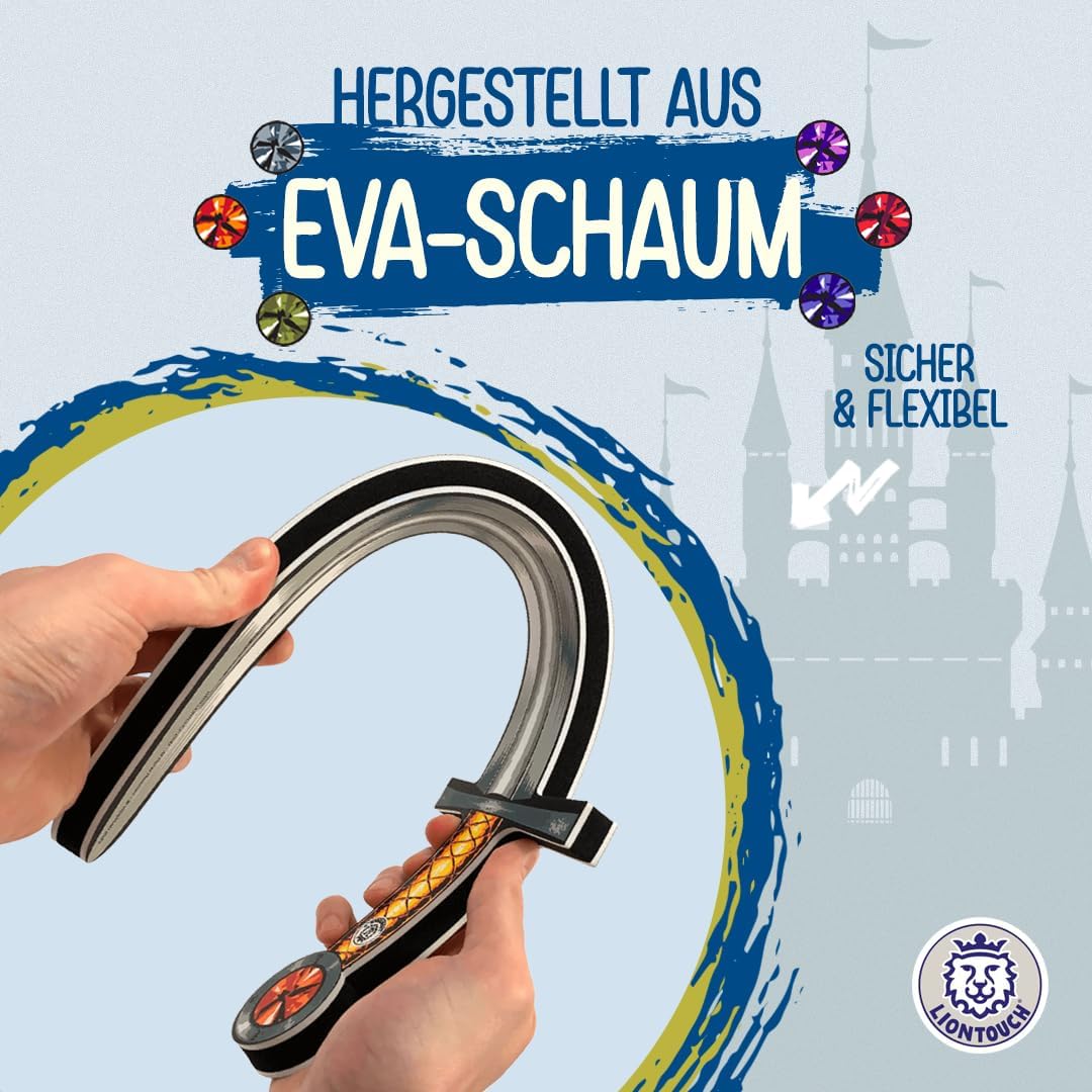 INCORAGGIANTE IL GIOCO IGATIATIVO. Ispira il gioco attivo e senza schermo tra amici con le nostre vivaci spade giocattolo della collezione Liontouch come armi giocattolo in schiuma. Perfetto per giochi all'aperto, attività indoor nei giorni di pioggia e coinvolgenti giochi di ruolo medievali che incoraggiano la creatività, la socializzazione e l'attività fisica in modo divertente e coinvolgente per i bambini. REGALO PERFETTO. I set da collezione di spade vengono forniti in una confezione regalo, che li rende accessori ideali per recite scolastiche, oggetti di scena teatrali e costumi. Sono perfetti per feste di compleanno a tema, appuntamenti di gioco o come regali unici che aprono i bambini a un mondo di gioco fantasioso ed esplorazione. Scegli tra la confezione da 3 e la confezione da 6 e che il divertimento abbia inizio! SICURO E DUREVOLE. Realizzate in schiuma EVA flessibile di alta qualità e lunghe 19,5 pollici, queste spade giocattolo di qualità sono comode, sicure e progettate per il divertimento attivo. Ideali per combattimenti giocosi grazie alla loro struttura flessibile, offrono un'esperienza di gioco di lunga durata. I bambini e i bambini dai 3 anni in su possono farsi strada attraverso avventure emozionanti, battaglie intense e sessioni di narrazione fantasiose. DIVENTA UN GUARDIANO DEL TESORO. Hai bisogno di ispirazione per un'attività divertente che manterrà i bambini attivi e sociali? emozionante gioco della guardia del tesoro in cui i bambini pensano in modo strategico e si impegnano in attività fisica mentre proteggono o rubano il tesoro con le loro spade da collezione. Scopri le regole più in basso nella pagina Liontouch produce spade, scudi e giocattoli per bambini da oltre 25 anni, traendo ispirazione da storie storiche medievali per creare un'esperienza di gioco coinvolgente e avventurosa che incoraggia l'immaginazione e la creatività dei bambini. Sempre fedeli ai nostri valori.