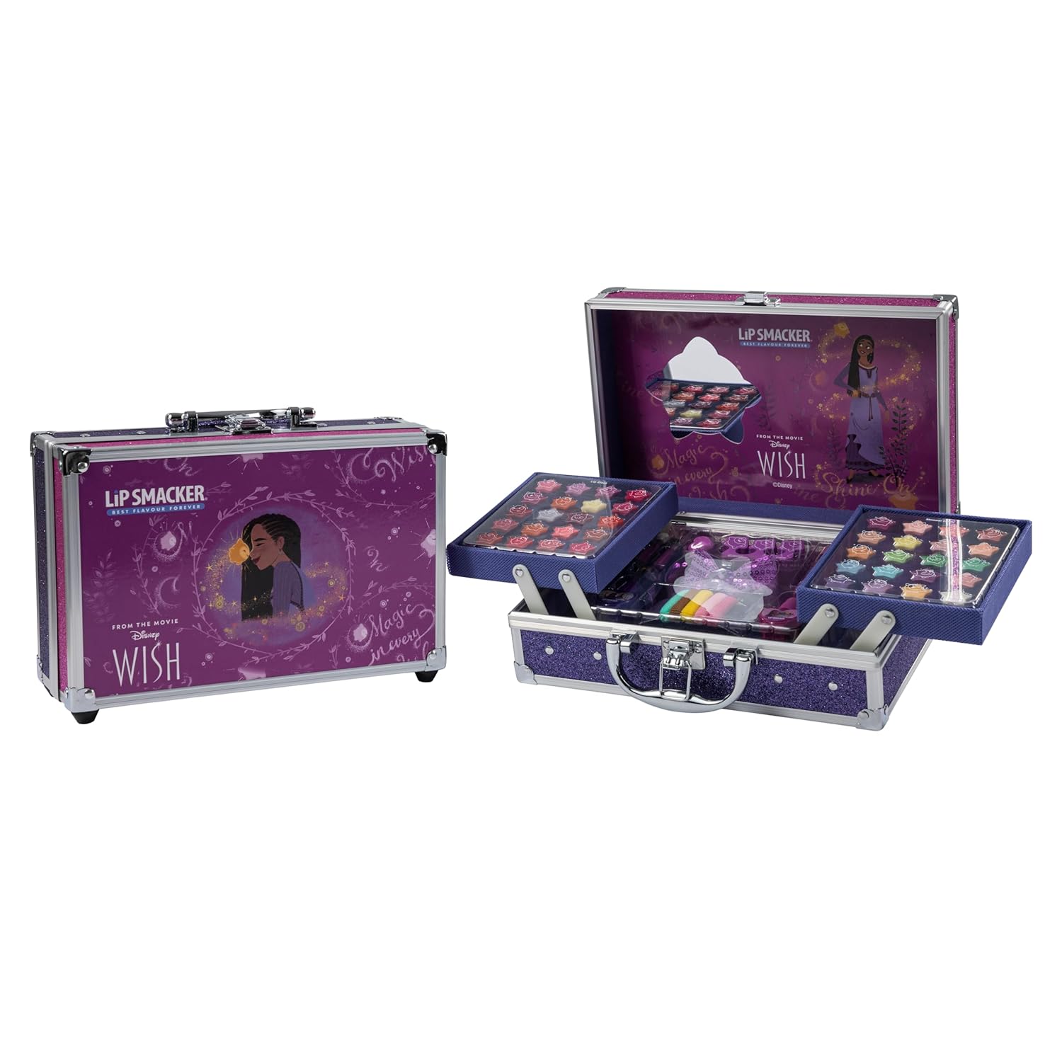 CREATIVITÀ SENZA LIMITI: Questo set trucco, ispirato al film Disney Wish, contiene palette viso e labbra in tanti colori magici che scateneranno la creatività della tua principessa VERSATILE: La nuova valigetta trucco Disney ha tutto il necessario per le occasioni speciali: contiene 20 lucidalabbra, 20 ombretti in crema, 2 smalti e 1 balsamo labbra in una varietà di colori ACCESSORI INCLUSI: Applicatori trucco, accessori per capelli, 1 anello e 1 specchio completano questa valigetta trucco per ragazze che stimolerà in sicurezza la loro immaginazione e offrirà infinite ore di divertimento con il trucco ESPRIMI UN DESIDERIO: scopri l'intera collezione Lip Smacker ispirata a Disney Wish: divertenti set di trucco per viso, labbra, unghie e una varietà di accessori di bellezza da collezionare! SORRIDI OVUNQUE NEL MONDO: dal 1973, Lip Smacker mette sorrisi sulle labbra dei bambini di tutto il mondo. I nostri deliziosi sapori, profumi e prodotti colorati assicurano momenti di felicità e fanno brillare le tue labbra